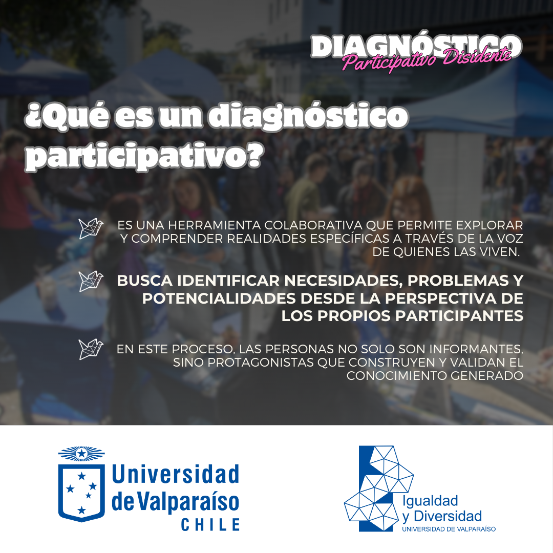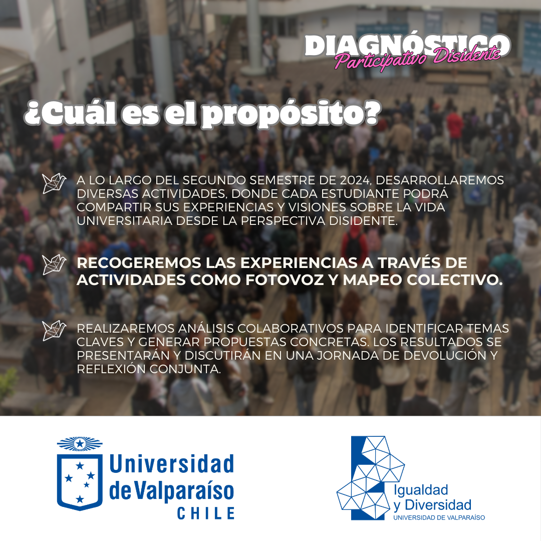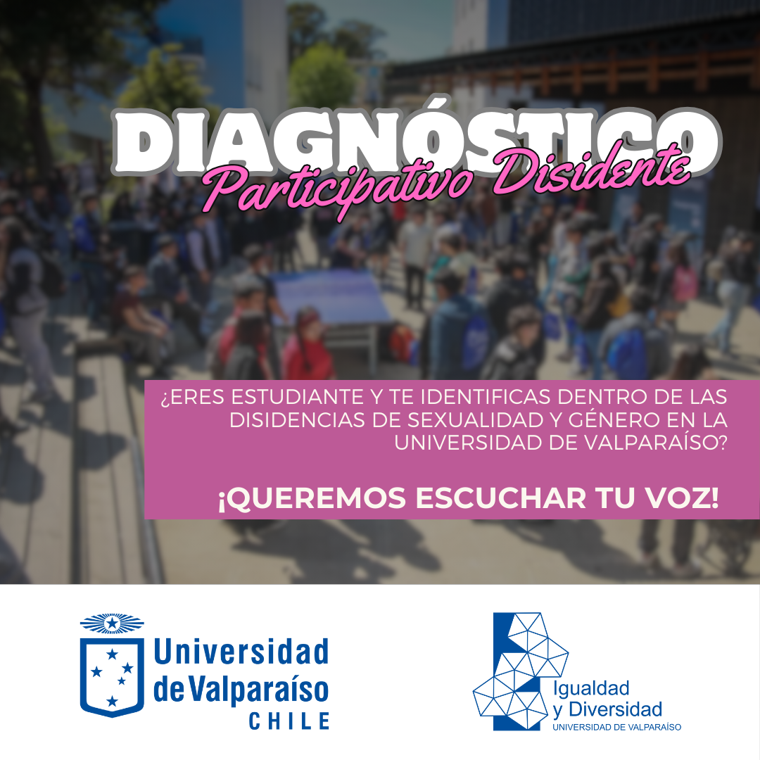 La Dirección de Igualdad y Diversidad de la Universidad de Valparaíso formula un llamado al estudiantado a participar del Diagnóstico Participativo Disidente, el cual tiene por finalidad desarrollar actividades enfocadas a la comunidad disidente de la institución.