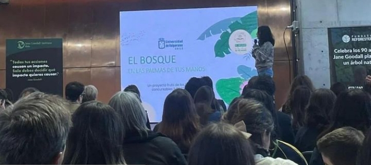 Ante la activista medioambiental y doctora en etología Jane Goodall, un grupo de estudiantes de la UV presentó el proyecto "El Bosque en Las Palmas de tus Manos", que diseñaron y ejecutaron en 2023 en la comuna de Llayllay. Se trata de Catalina Jerez y Cristóbal Alvear, de Medicina Campus San Felipe, y Rocío Jerez, de Kinesiología, quienes expusieron el 9 de agosto, en el Museo Interactivo Mirador (MIM), en un acto que contó con la participación de la ministra de las Culturas, las Artes y el Patrimonio, Carolina Arredondo, y diversos invitados. Les acompañó el director de la Escuela Las Palmas de Llayllay, Héctor Rauld.