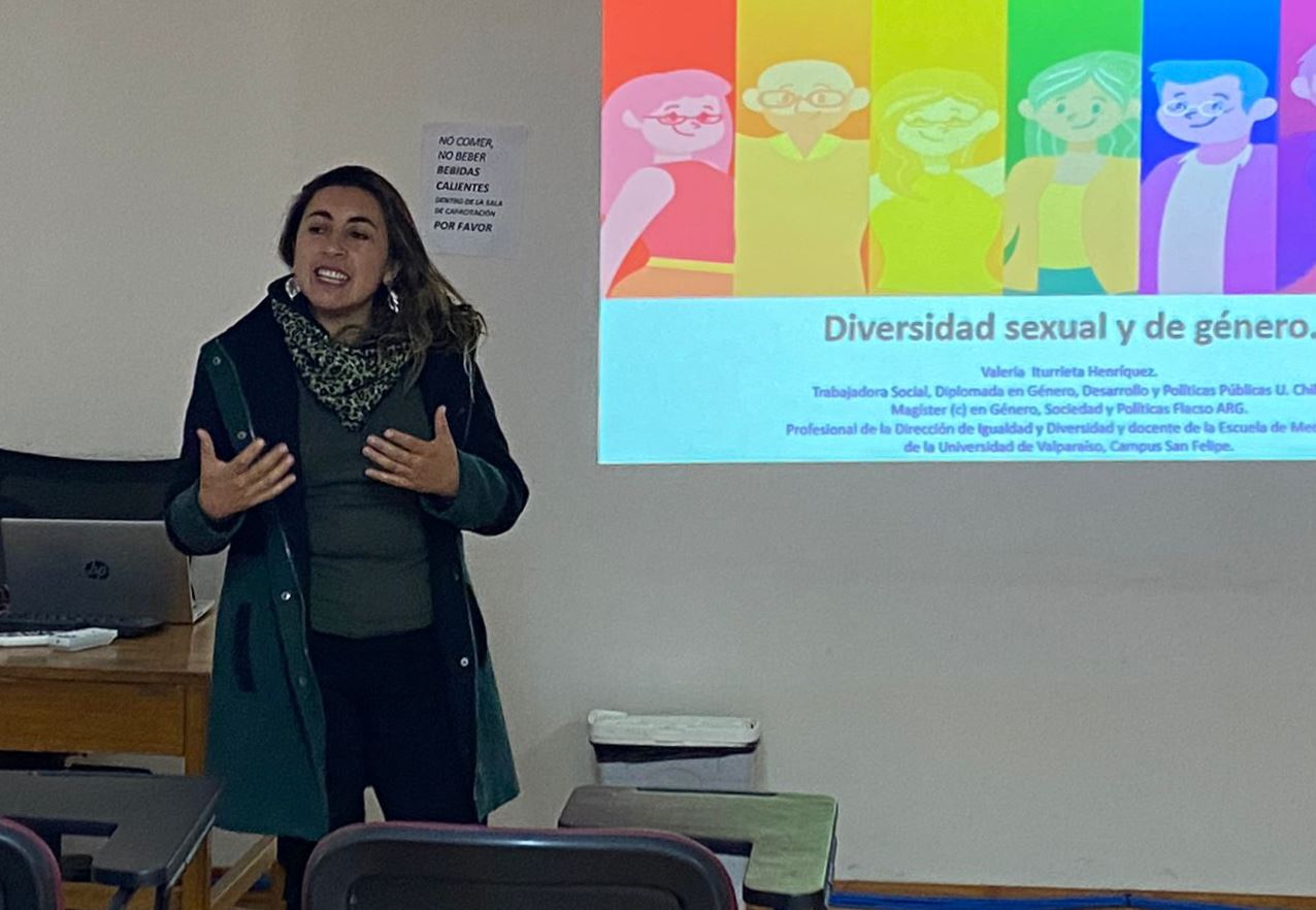 Funcionarias y funcionarios de distintos establecimientos de la de la red del Servicio de Salud Aconcagua, participaron del taller “Diversidad sexual y de género”, impartido por la Dirección de Igualdad y Diversidad de la UV. La iniciativa se generó a partir de la necesidad expuesta por los comités locales de equidad de género de la referida red.