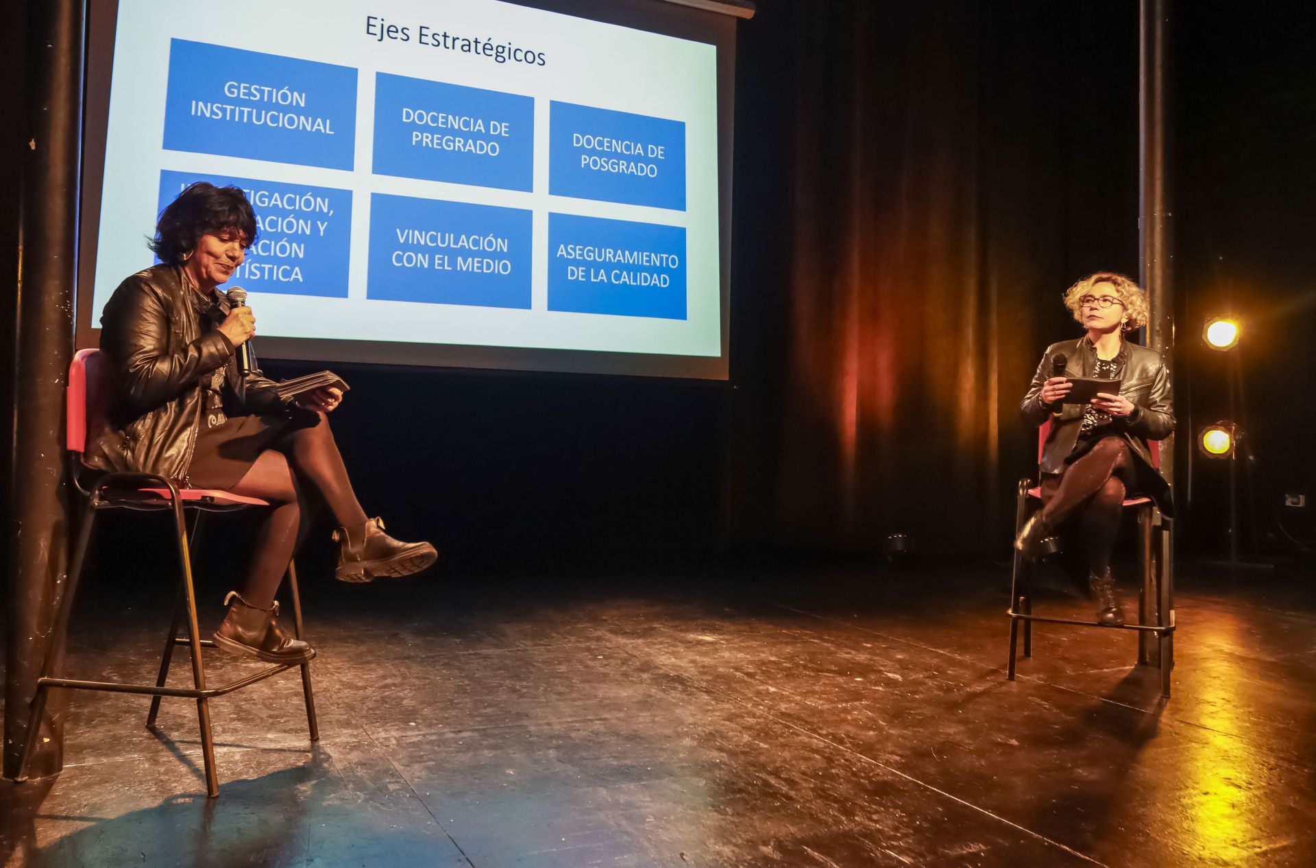 Gestión institucional, docencia de pre y posgrado, investigación, innovación y creación artística, vinculación con el medio y aseguramiento de la calidad, son los seis ejes del Plan de Desarrollo Estratégico 2022-2032 de la Escuela de Teatro UV, que fue presentado en la Sala Negra con la asistencia de académicos, estudiantes y funcionarios.
