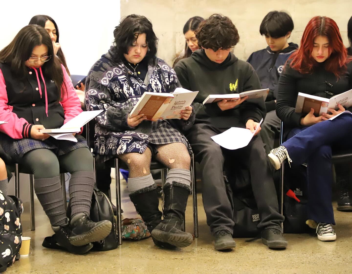 Se llevaron a cabo los talleres «Reautoría de mi vida: creando mi propia historia», «La orden del huemul: un viaje al pensamiento pedagógico de Gabriela Mistral» y «Conversaciones con un Diario Íntimo», a cargo de los mediadores de la lectura Verónica González, Víctor Berrios y Fernando Reyes, respectivamente. Participaron alrededor de sesenta estudiantes y cada uno recibió un ejemplar del libro que se abordó en el taller.