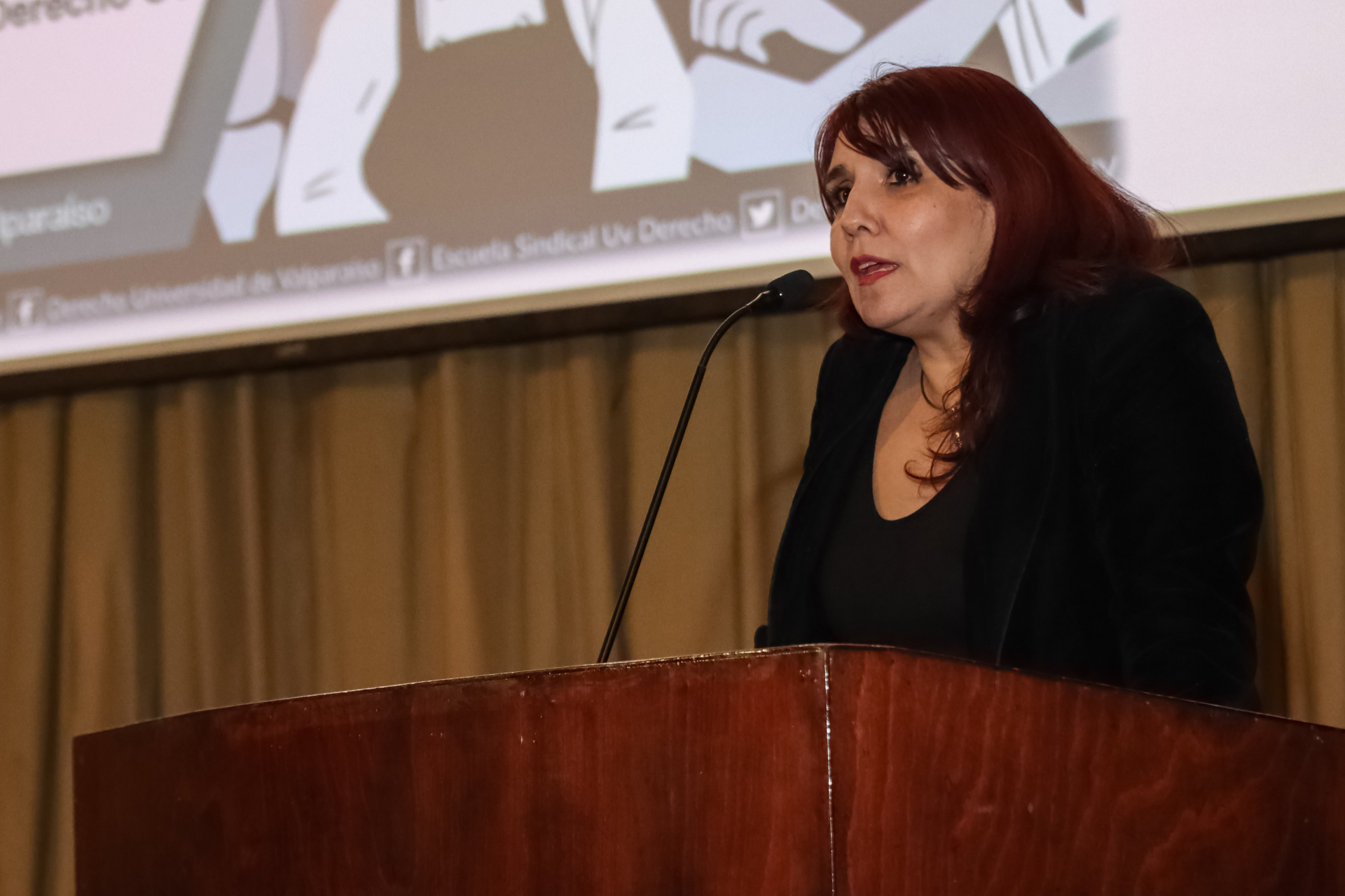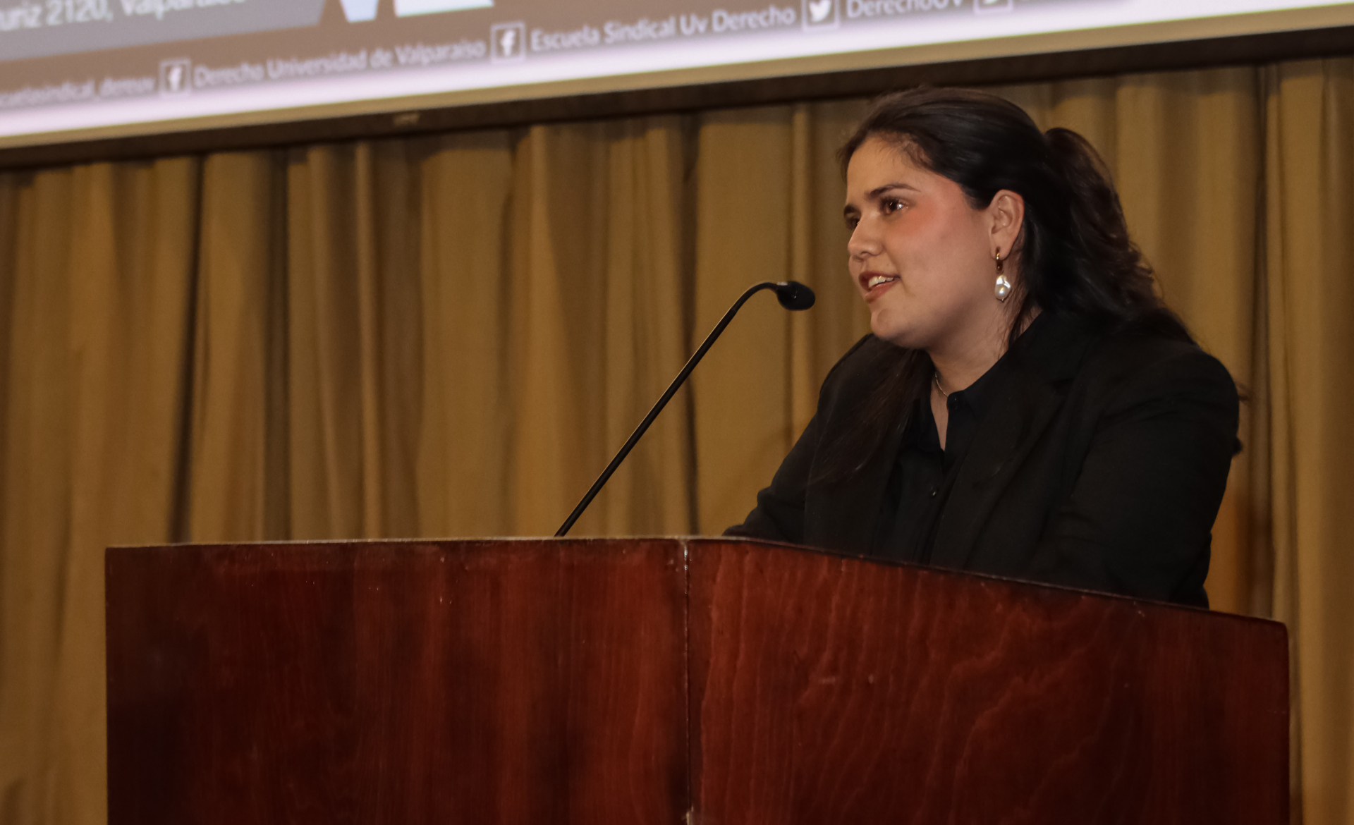 La actividad fue encabezada por la vicedecana de la Facultad de Derecho, Inés Robles, quien estuvo acompañada por el presidente del Departamento de Derecho del Trabajo y Seguridad Social, Matías Rodríguez, y la coordinadora de la Escuela Sindical y ayudante de la UV, Leslie Moya.