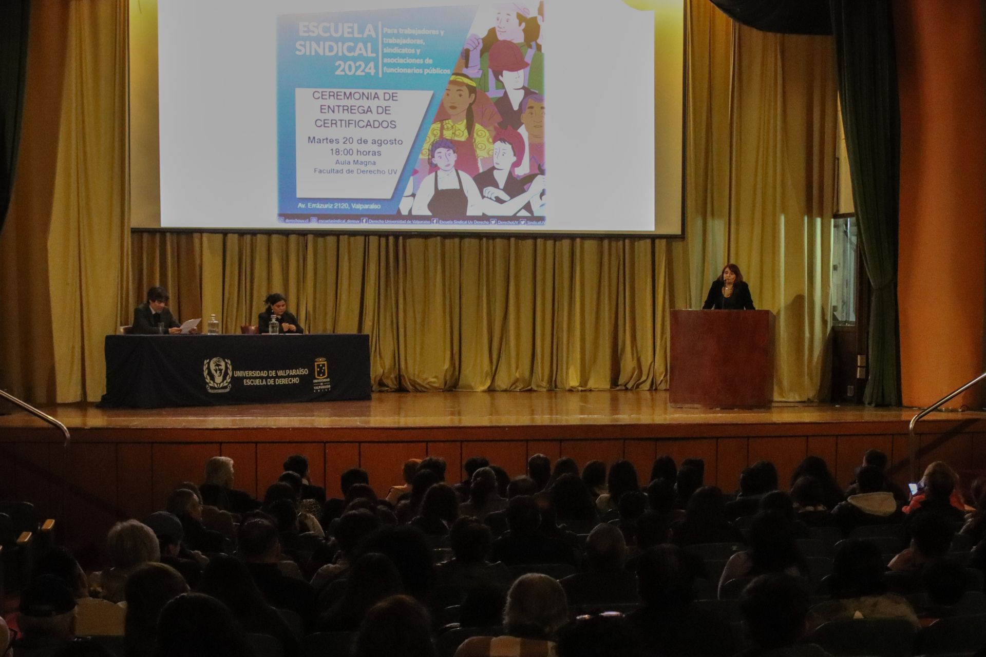 La Escuela Sindical de la Escuela de Derecho de la Universidad de Valparaíso cerró con éxito su decimotercera versión, con la realización de su ceremonia de entrega de certificados a quienes completaron los requisitos de asistencia.