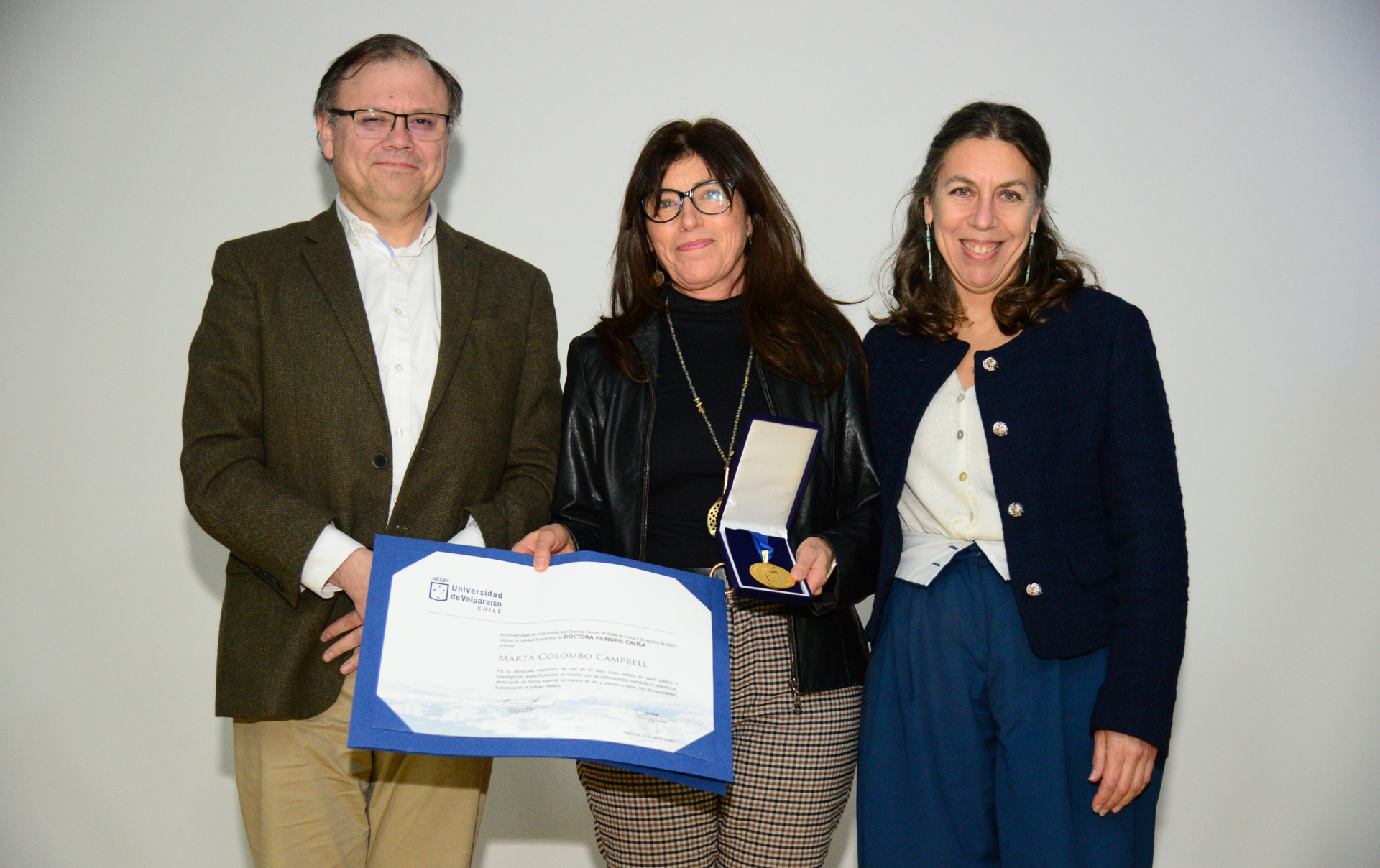 La celebración de los 58 años de la Escuela de Medicina de la UV fue el marco para la entrega de la distinción de Doctora Honoris Causa a la médica Marta Colombo Campbell, destacada por su trayectoria académica en el campo de la neurología pediátrica, así como por su calidad humana en la atención.