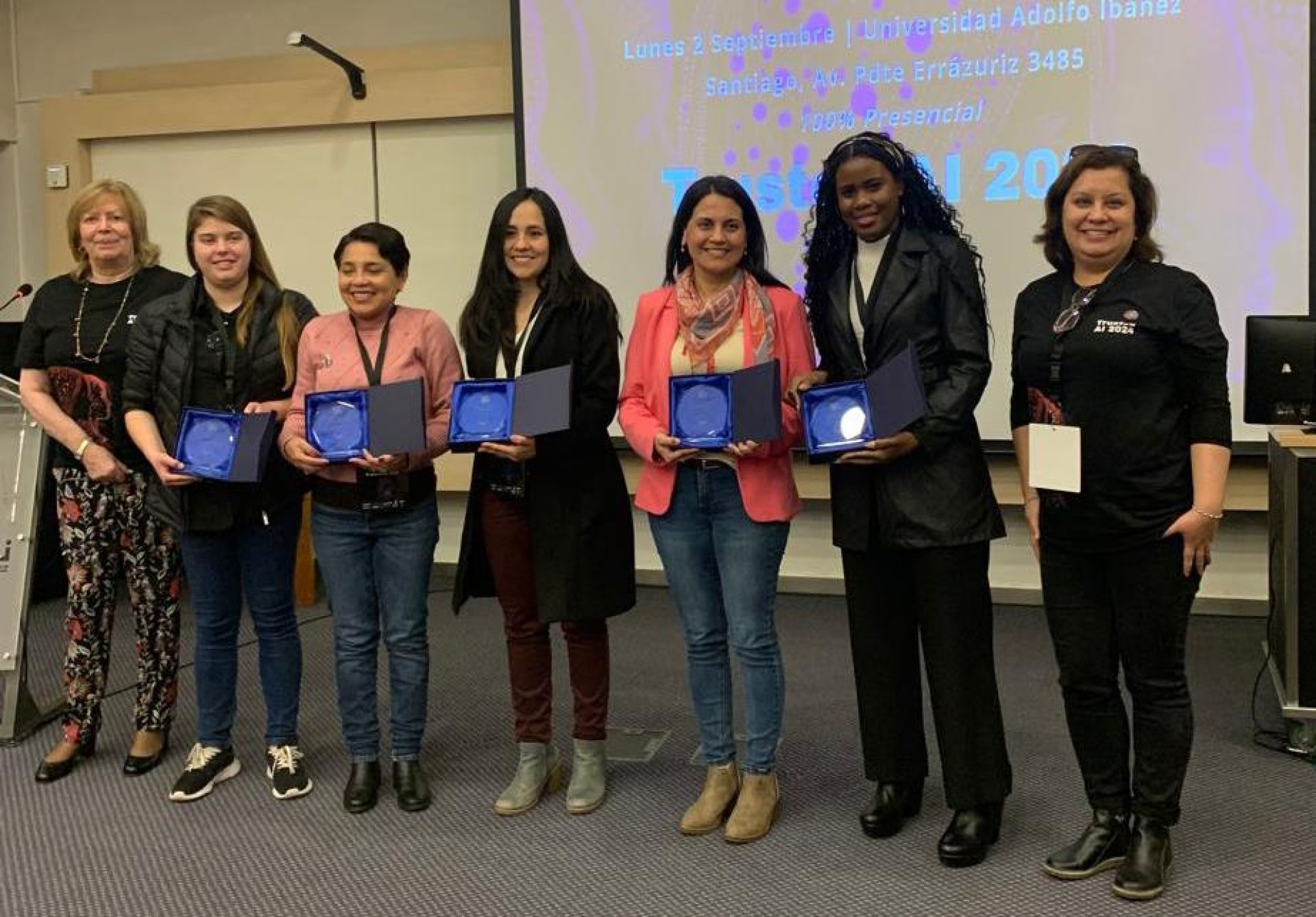 Las académicas Eliana Providel, Ana Aguilera y Marta Barría, junto a la estudiante de doctorado Dayana Palma, de la Escuela de Ingeniería Informática de la Universidad de Valparaíso, expusieron en el workshop Trusted AI, organizado por la Asociación Chilena de Mujeres en Inteligencia Artificial (MIA-CL), que se desarrolló en la Universidad Adolfo Ibáñez en Santiago.