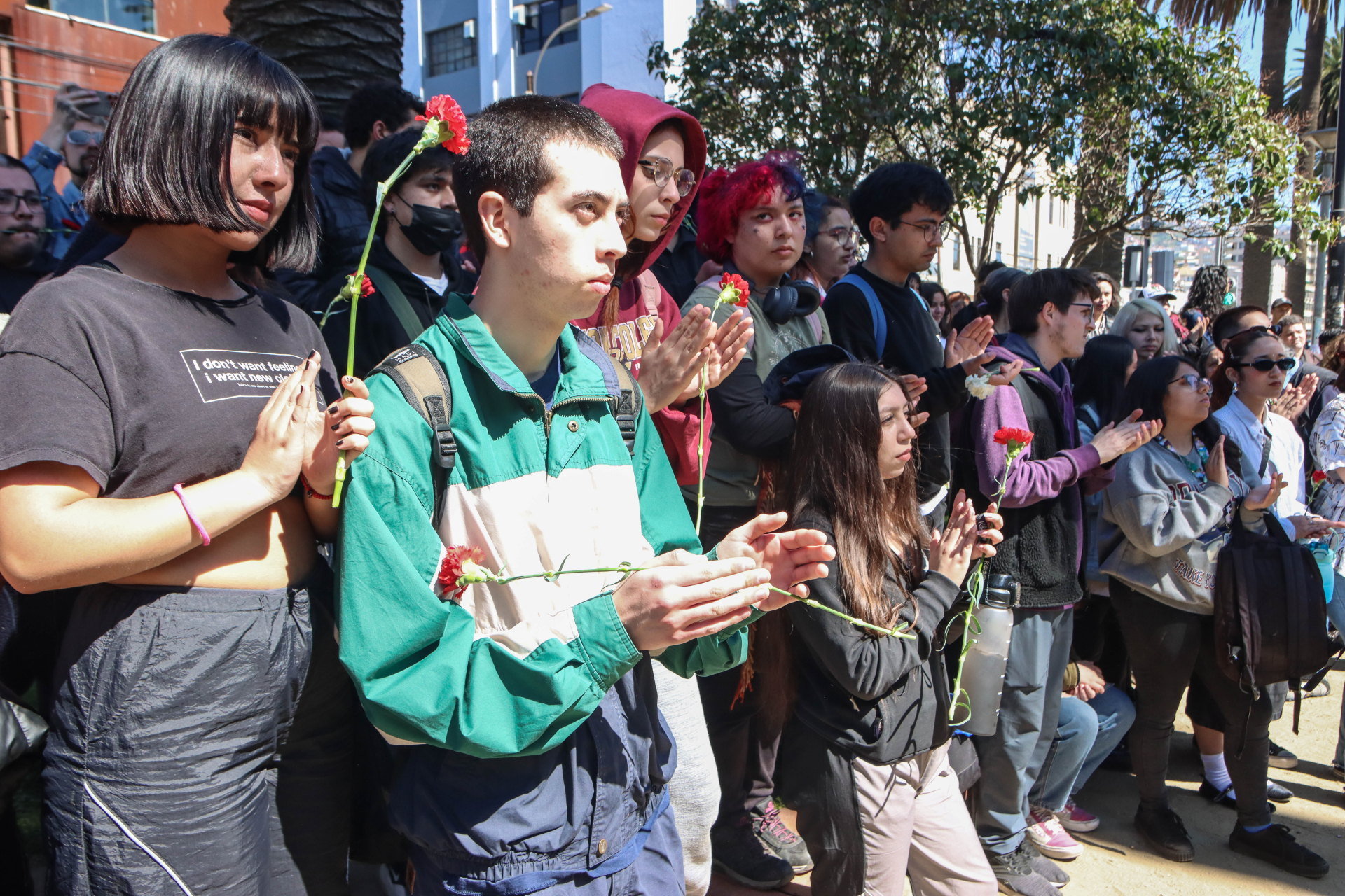 La comunidad de la Escuela de Teatro UV, integrada por docentes, estudiantes, funcionarios y funcionarias, realizó su tradicional romería al Memorial de Detenidos Desaparecidos ubicado en la avenida Brasil, con motivo de la conmemoración del 11 de septiembre.