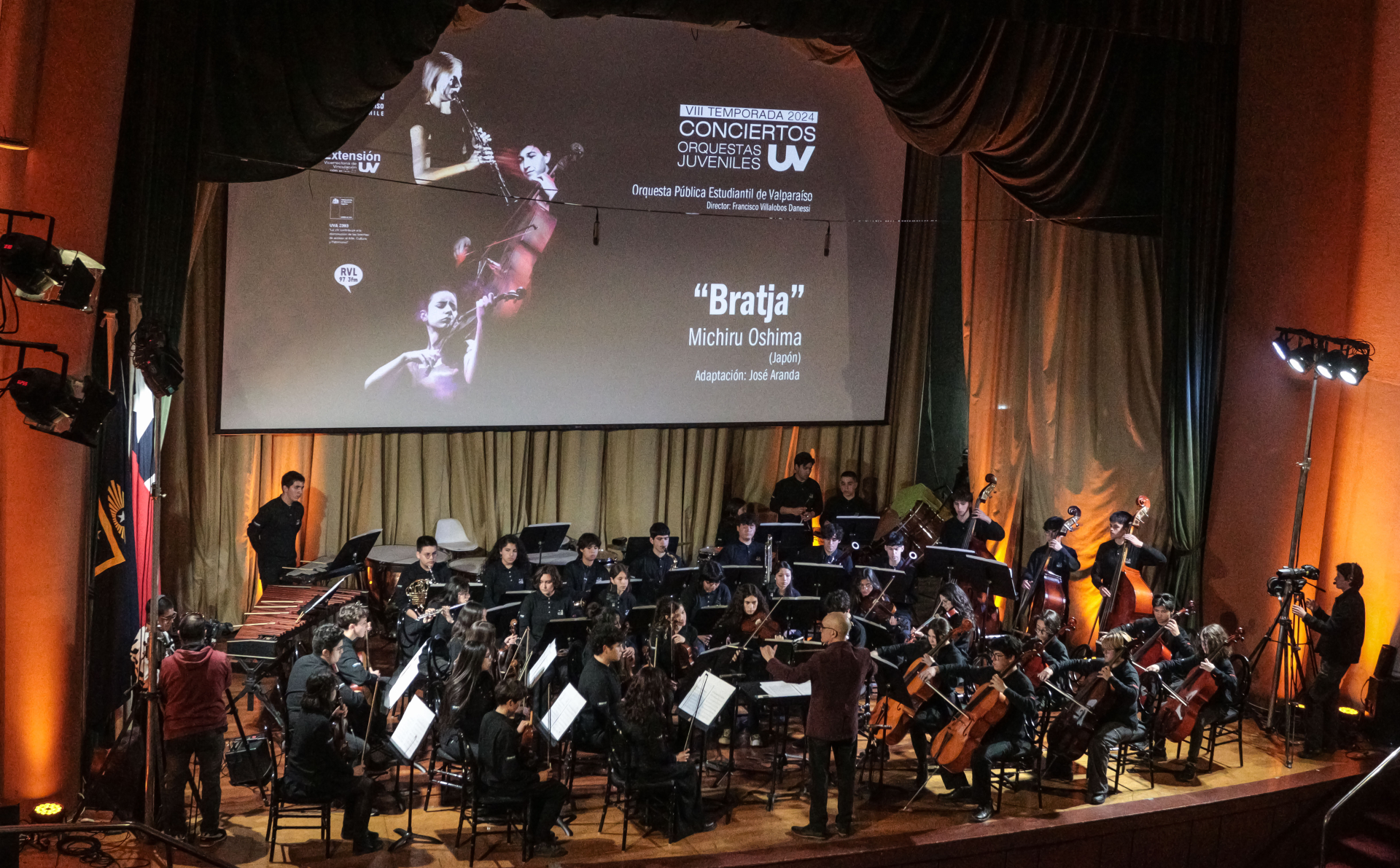 Un amplio repertorio interpretó la Orquesta Pública Estudiantil de Valparaíso este jueves 26, en la segunda velada de la Octava Temporada de Orquestas Juveniles de la UV. Bajo la dirección de Francisco Villalobos, el grupo dependiente del Servicio Local de Educación Pública de Valparaíso se presentó en el Aula Magna de la Facultad de Derecho.