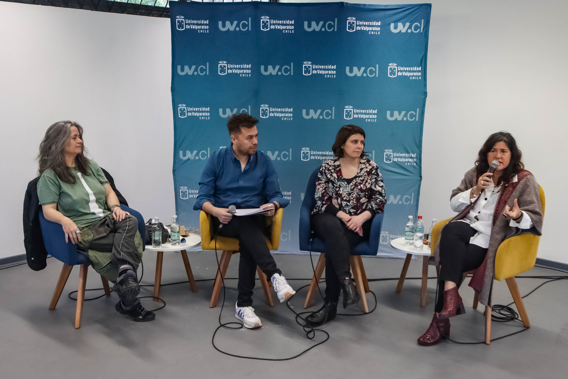 Camila Landon, de la Fundación OANI Teatro; Daniela Campos, coordinadora nacional de Puntos de Cultura Comunitaria del Ministerio de las Culturas, Artes y Patrimonio (Mincap) y María Paz Undurraga, jefa de la División de Patrimonio Cultural del Mincap, fueron las expositoras en el cuarto conversatorio de la serie “Hacia una concepción de la cultura como bien público: Conversaciones sobre cultura, universidad y sociedad”, que se desarrolló en el Parque El Litre, en Valparaíso.