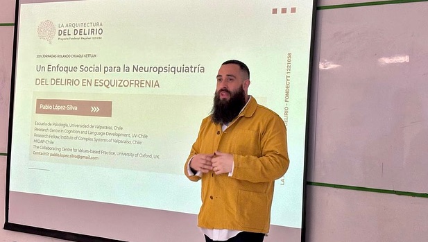 Finalmente, a las y los estudiantes Lucas Quijanes Escobar, Natacha Chacana Catalán y Camila González Undurraga, quienes participaron en la modalidad de póster, y Pablo Álvarez, quien es parte del seminario de investigación impartido por el profesor Pablo López-Silva, quien presentó “El modelo de la ipseidad en esquizofrenia: un análisis sistemático”.