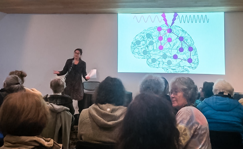 Como parte del simposio, se llevó a cabo una tarde de ciencia y cultura que destacó la importancia de actividades rítmicas para la salud cerebral. Las investigadoras Begoña Góngora y Alondra Castillo, ambas de la Facultad de Medicina de la Universidad de Valparaíso, dirigieron la charla “Cantar para un cerebro saludable”, subrayando cómo el canto y el baile ayudan a estimular la actividad cerebral y favorecen el envejecimiento saludable.
