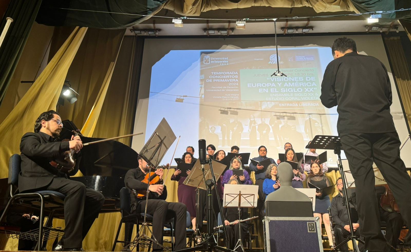 Ensamble Siglo XX y Estudio Coral Violeta se presentaron en tercera jornada de Temporada de Conciertos de Primavera 2024 de Derecho UV