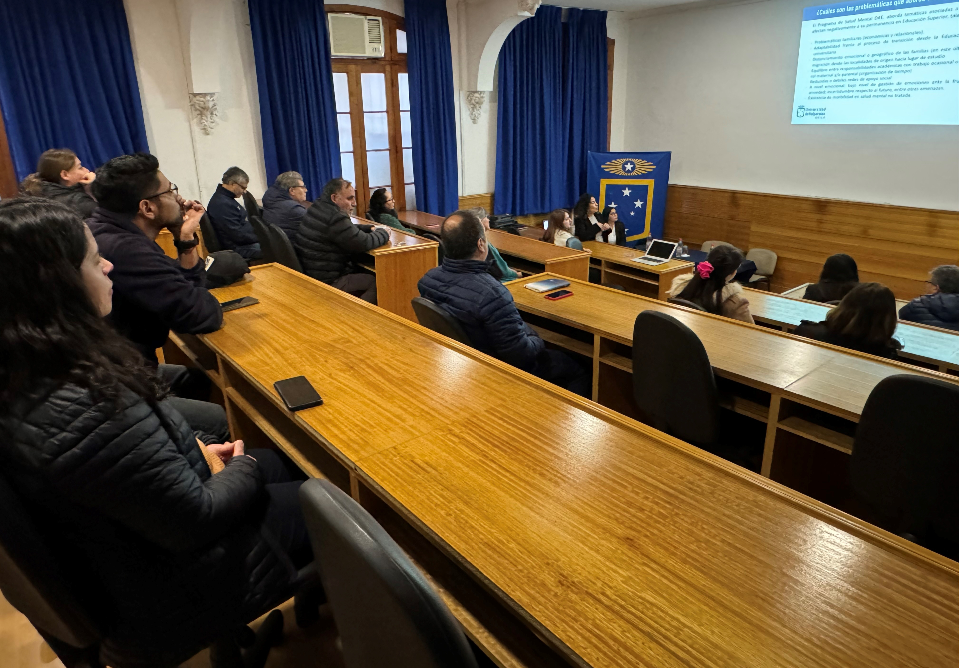 En la ocasión participaron la directora de la DAE, Pierina Penna, y la coordinadora de esta unidad en el recinto capitalino, Jazmín Gallardo, y quienes son parte de la Comisión de Salud Mental de la Universidad de Valparaíso: Rubén Alvarado y Fanny Leyton, docentes de la Facultad de Medicina; Cecilia Rajcevic, psicóloga del Servicio Médico y Dental de Alumnos, y Vania González, trabajadora social de la DAE.