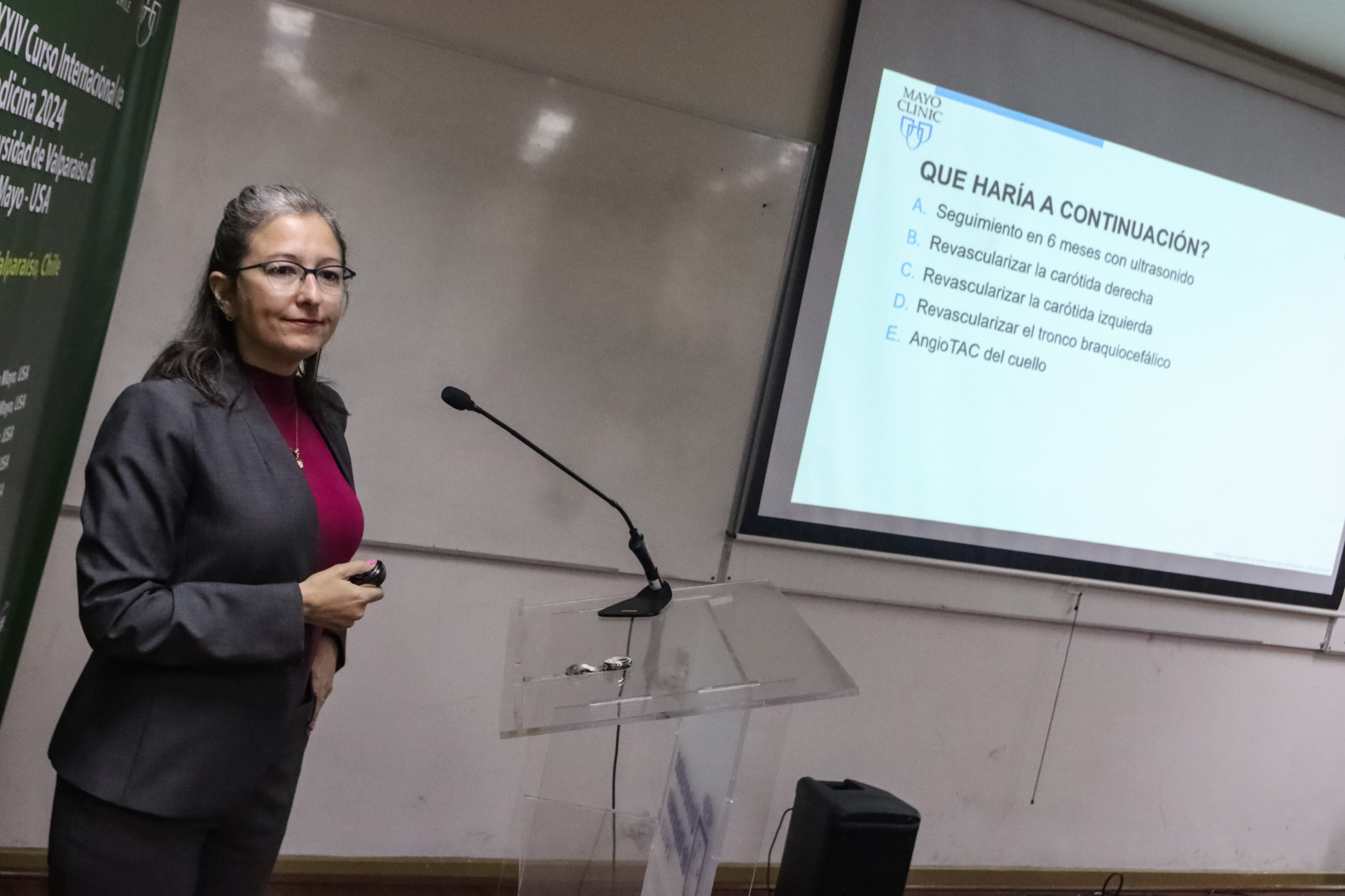 El encuentro, que reunió a más de un centenar de estudiantes y docentes de diferentes universidades, formó parte del programa académico 2024 del Curso Internacional de Medicina que cada año organiza el Departamento de Medicina Interna de la Escuela de Medicina de la Universidad de Valparaíso junto a ese prestigioso centro clínico estadounidense.