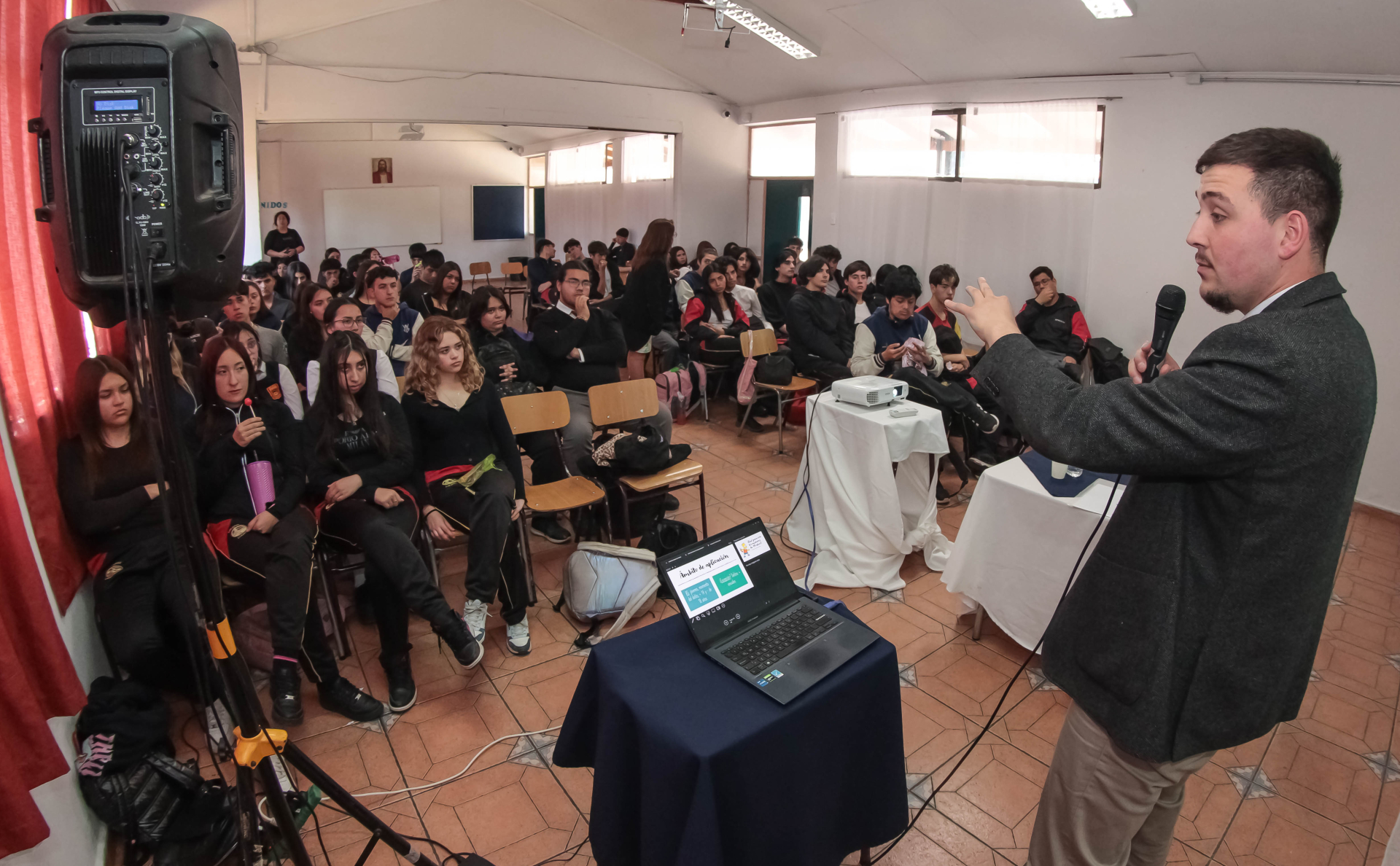 Mauricio Menares presentó su exposición a estudiantes de cuarto medio del establecimiento.