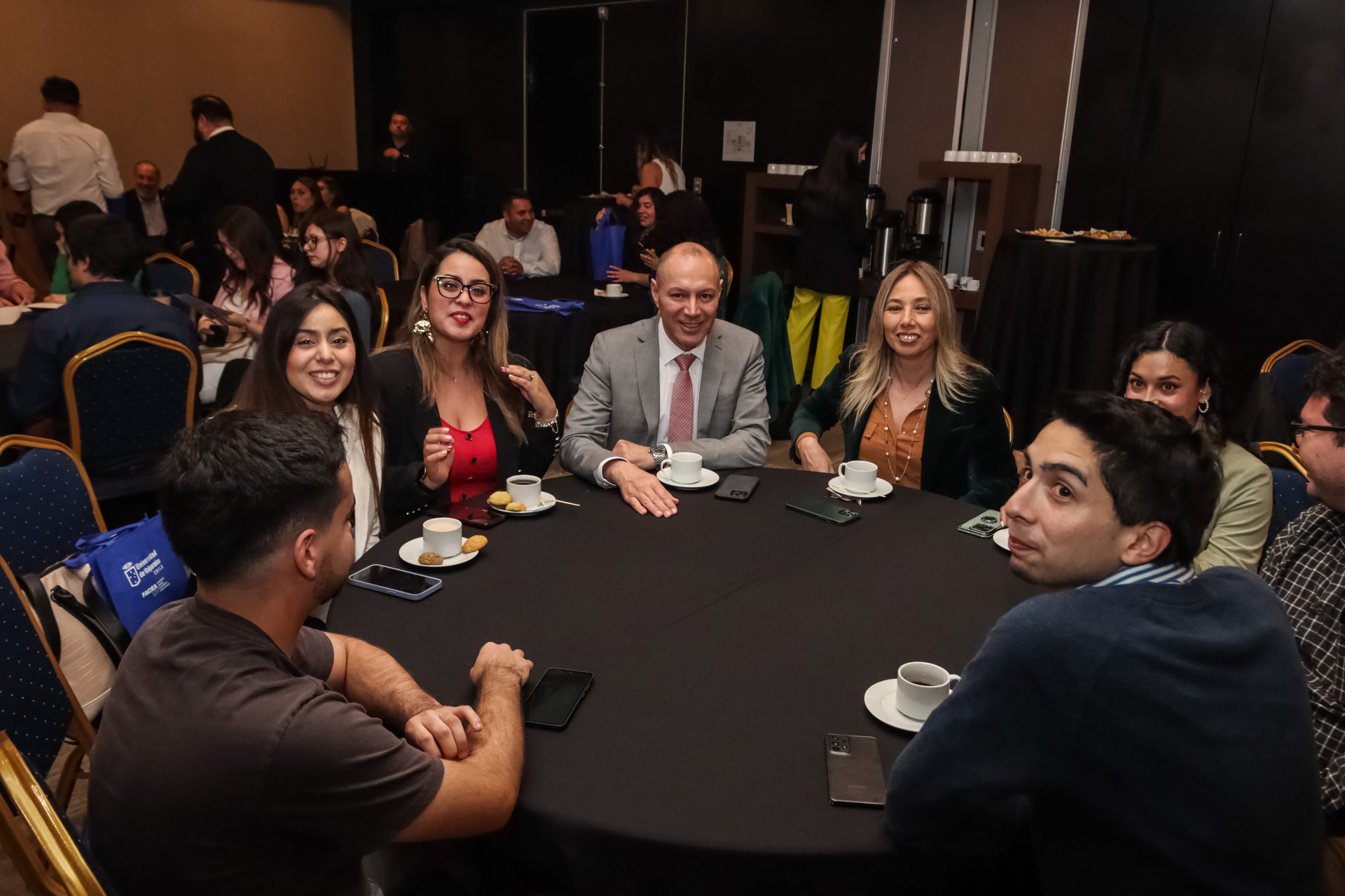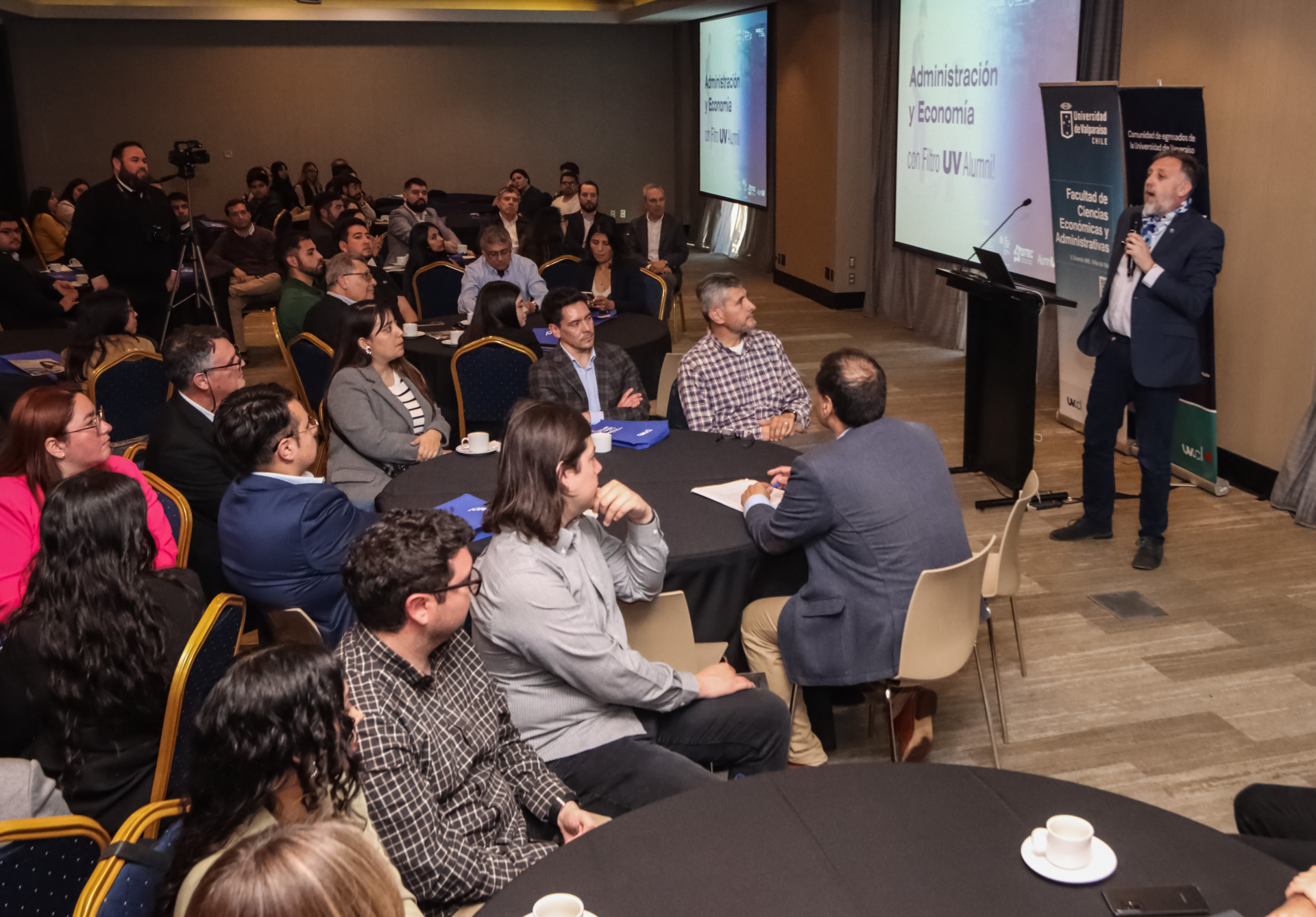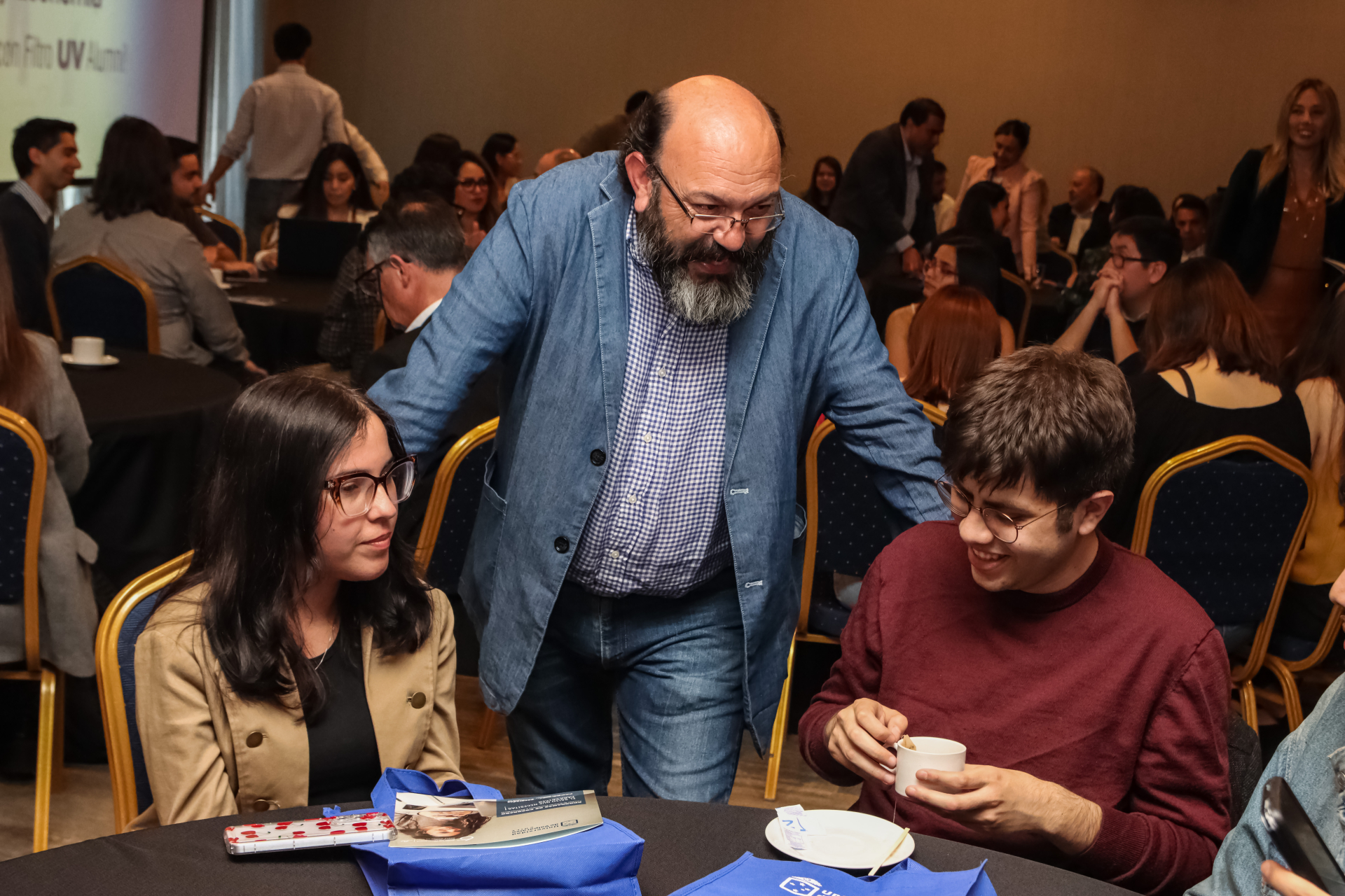 En los salones de Novotel de Viña del Mar, tuvo lugar el encuentro con exalumnos “Administración y Economía con Filtro UV Alumni”, organizado por la Facultad de Ciencias Económicas y Administrativas con el apoyo de Alumni UV y de la Dirección de Innovación y Transferencia Tecnológica de la UV (DITEC). La iniciativa —que contó con la asistencia de más de un centenar de invitadas e invitados, egresados y profesionales de las carreras de esa unidad académica— tuvo por objeto reunir a dos generaciones de alumnos para compartir y conversar acerca de distintos temas de interés, tales como Inteligencia Artificial, innovación y empleabilidad, además de confraternizar y fortalecer redes de apoyo entre los egresados y con la Universidad, promover programas de posgrado y generar vínculos útiles para una mejor inserción en el mundo del trabajo.