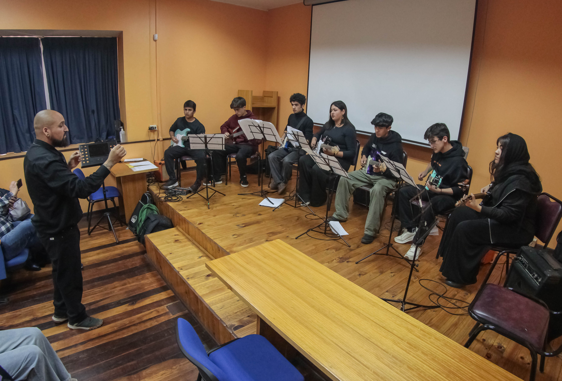 Las pasantías fueron desarrolladas por estudiantes ayudantes del ensamble de guitarras eléctricas Planeta Minimal, de quinto año de la carrera, quienes trabajaron con las y los escolares en sus establecimientos durante tres meses.