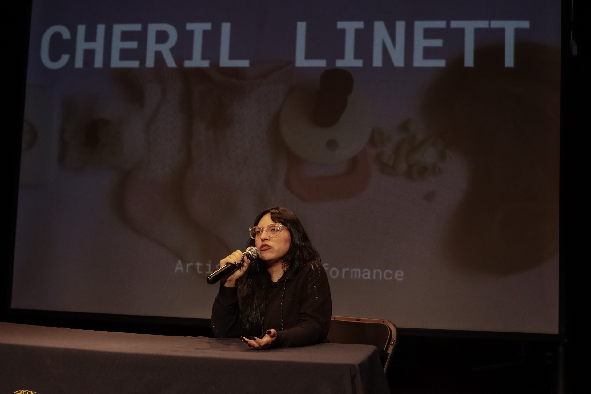 Un conversatorio con estudiantes y titulados de la Escuela de Teatro y una exhibición de la práctica de performance en la explanada del Parque Cultural de Valparaíso, realiza la artista Cheril Linnet como parte su microrresidencia en la UV en el marco del Séptimo Encuentro Navicular en Torno al Cuerpo.