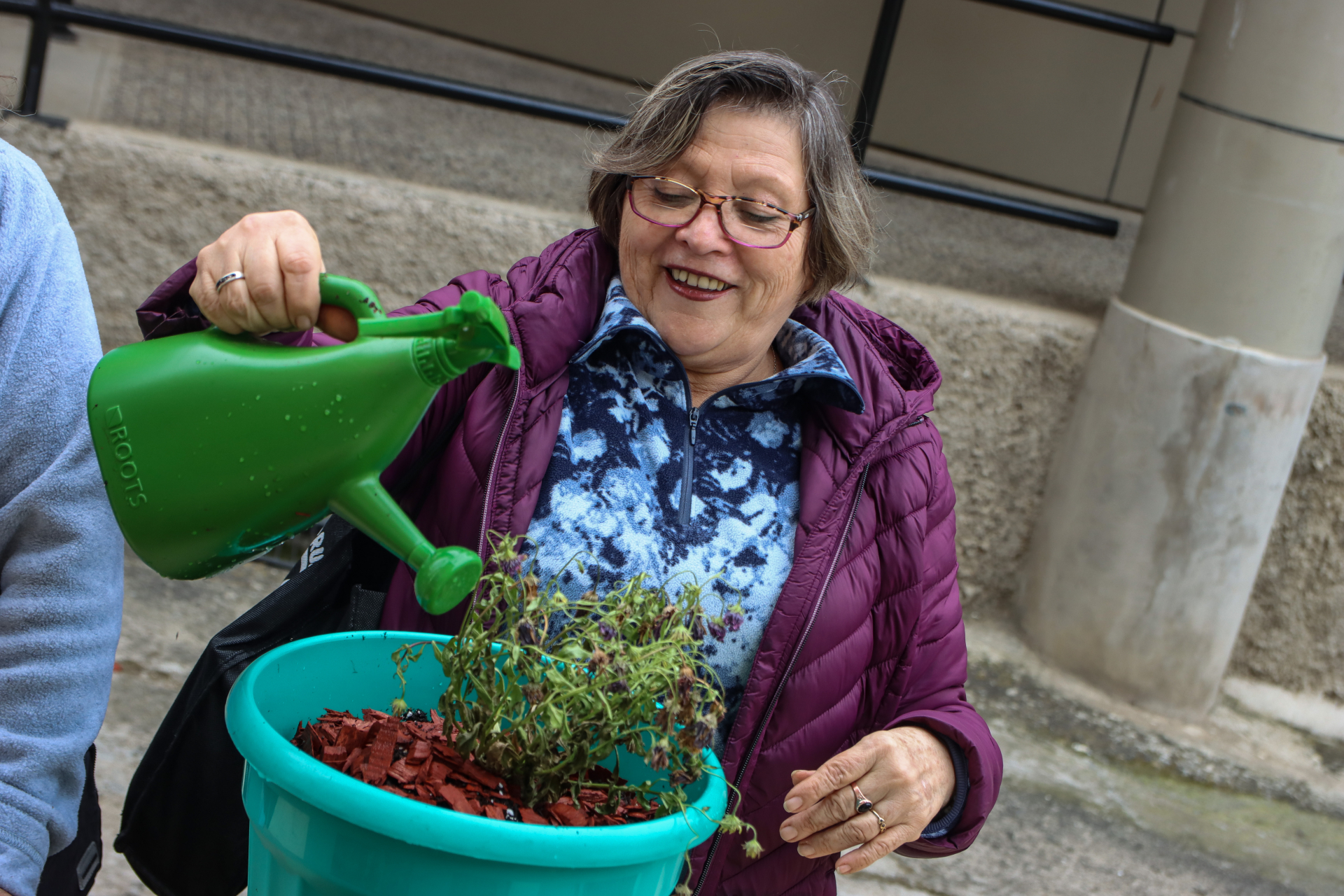 Para cuidar las plantas que quedaron en distintos puntos de la Escuela de Sociología, quienes participaron del proyecto “tienen que seguir viniendo y ojalá invitar a más personas, y ahí también seguir trabajando otras temáticas importantes: la vejez, la salud mental, el envejecimiento activo, etcétera”, explica Amanda Pedernera.