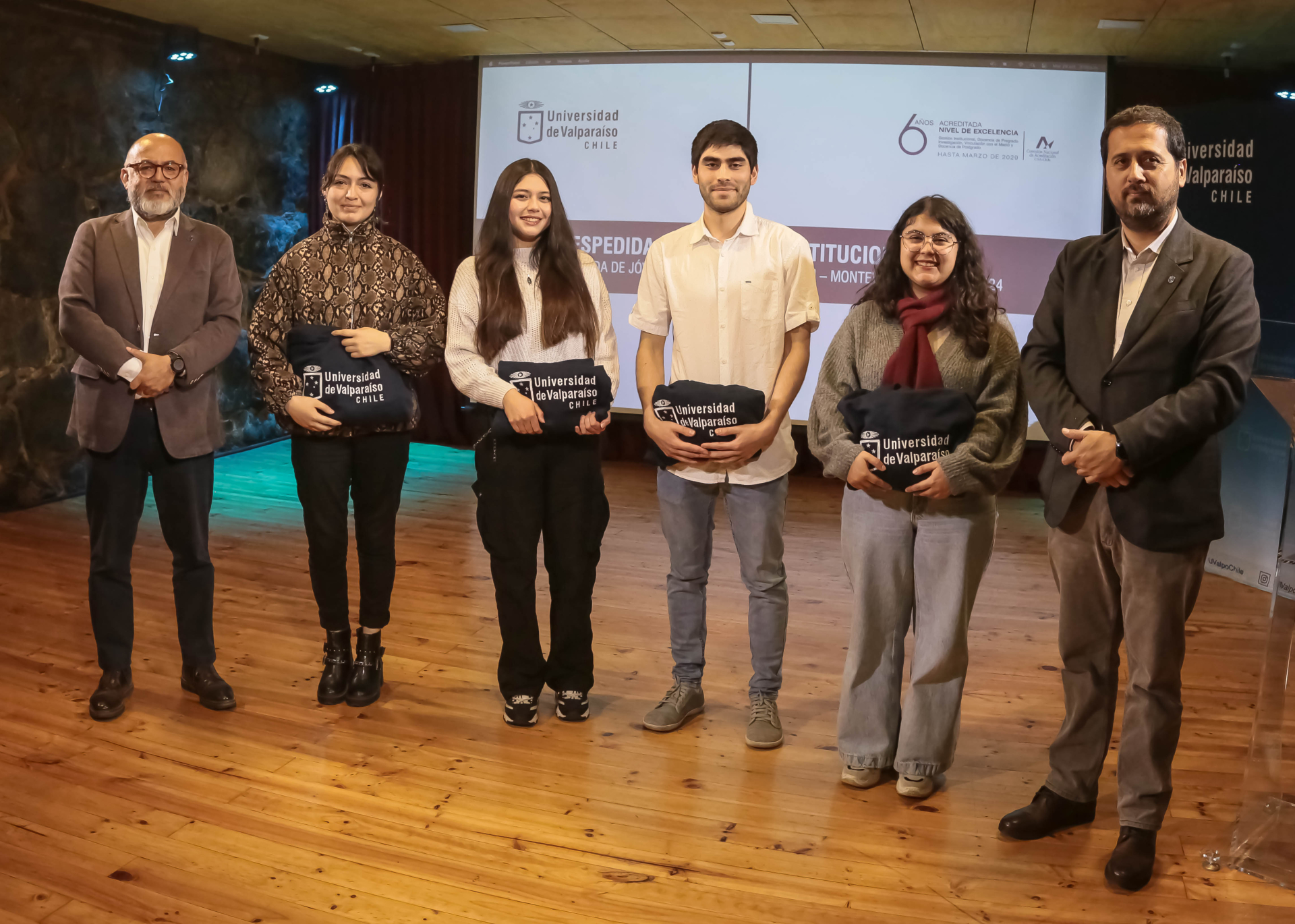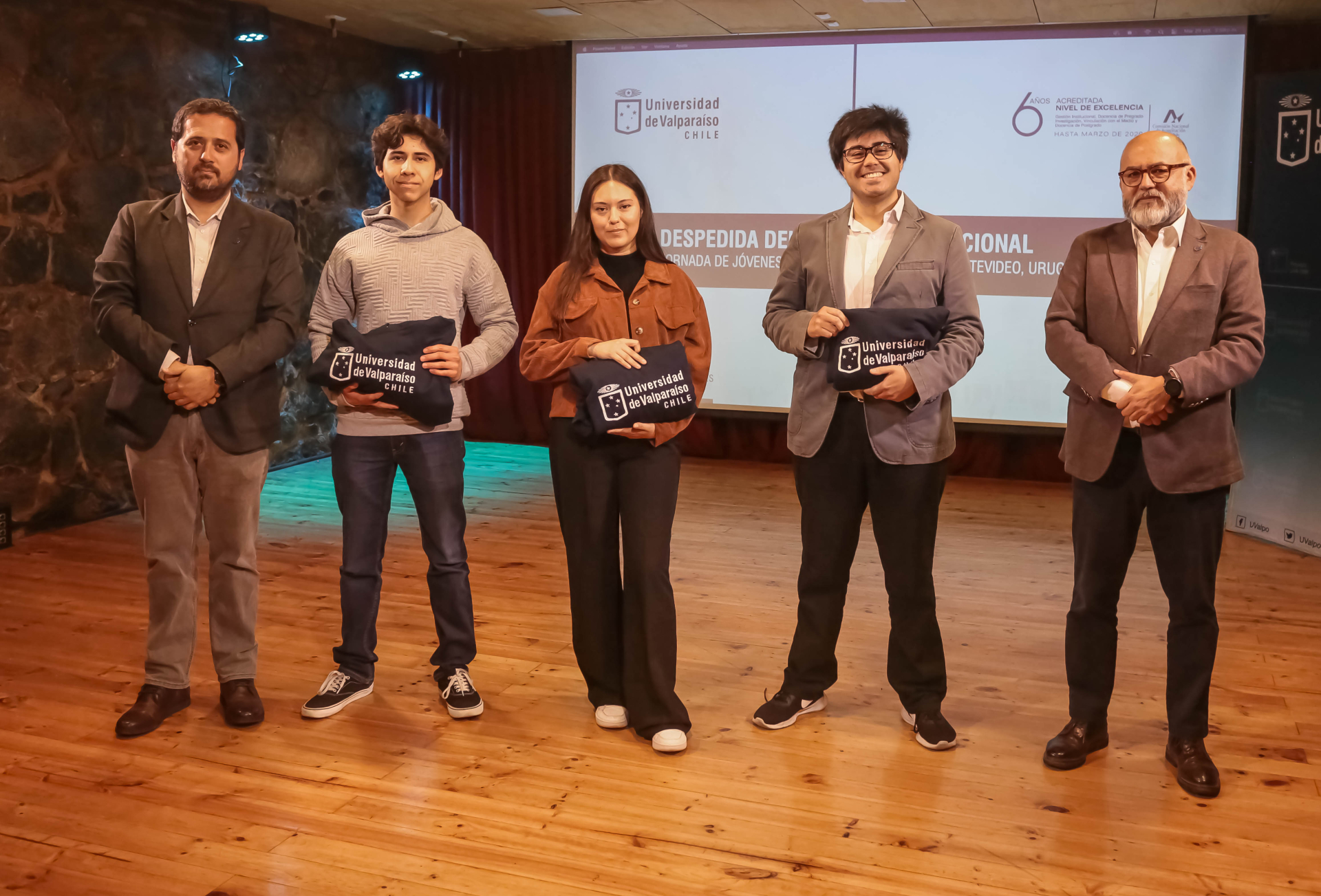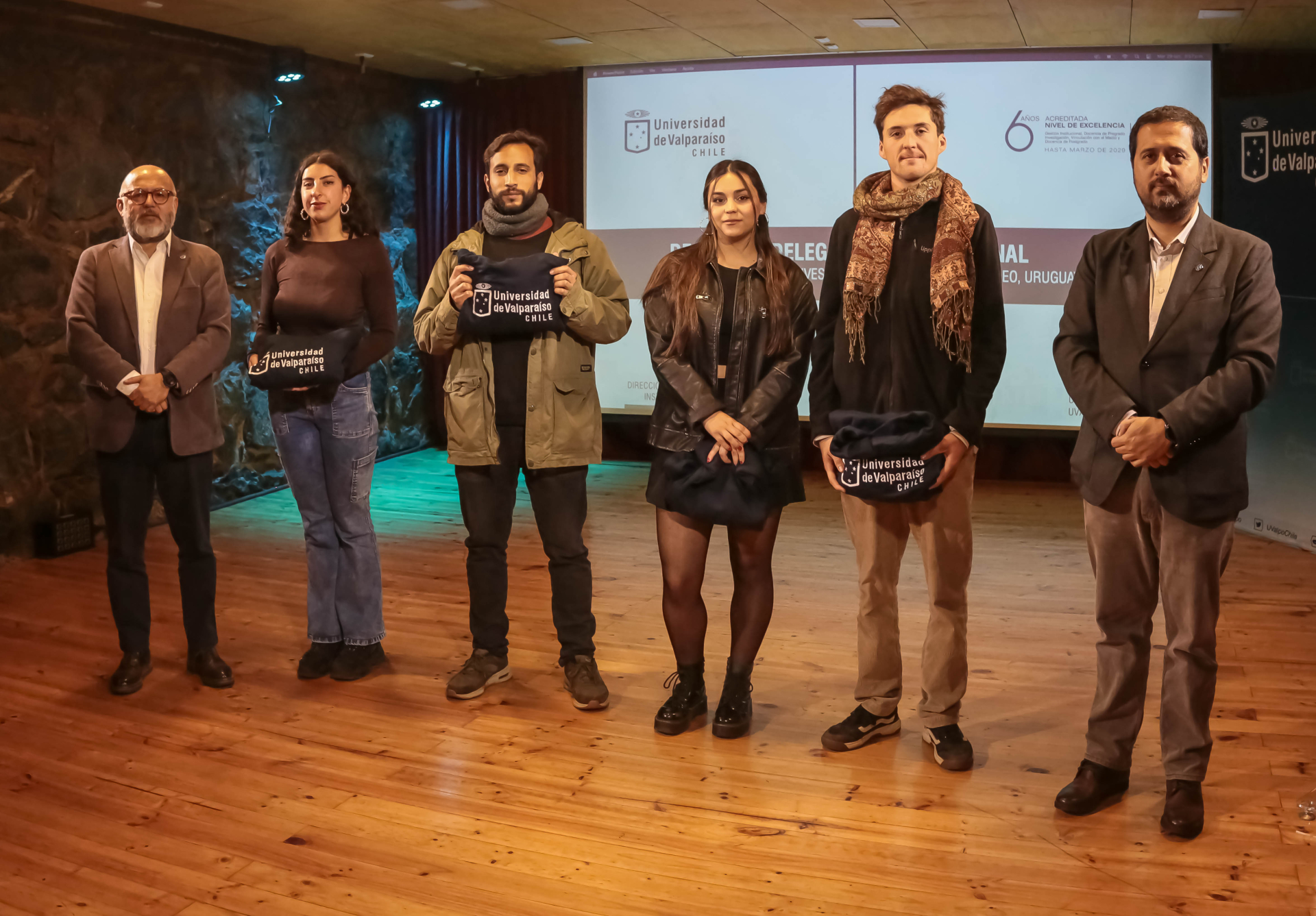 Durante la ceremonia de despedida, los estudiantes recibieron un polerón institucional que los inviste como embajadores de la Universidad de Valparaíso en la Universidad de la República, para que sean reconocidos como parte de la delegación UV en el encuentro.
