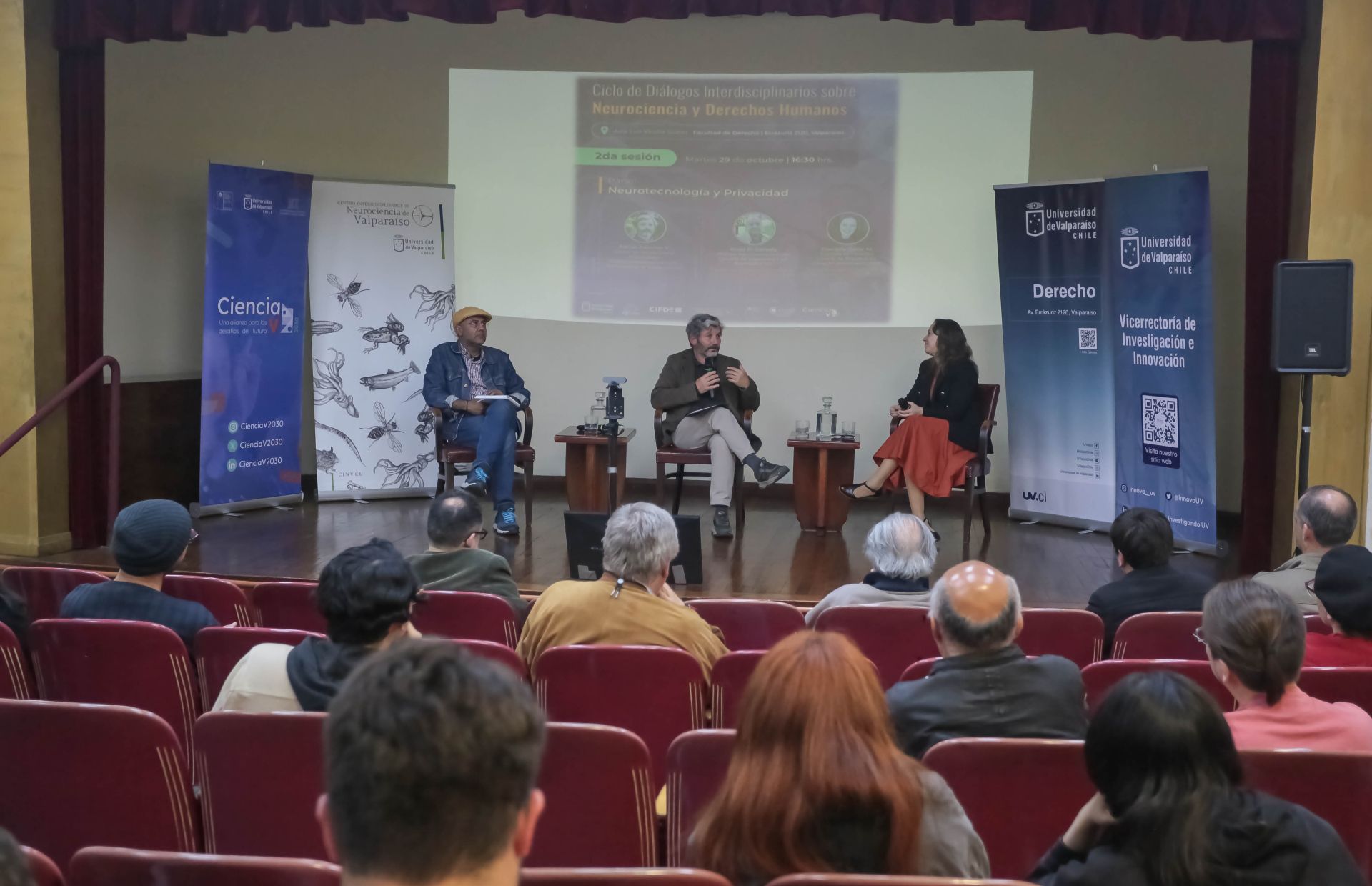Expusieron Danielle Zaror, integrante del Centro de Estudios de Derecho Informático de la Universidad de Chile, y Wael El-Deredy, profesor de la Escuela de Ingeniería Civil Biomédica de la UV.