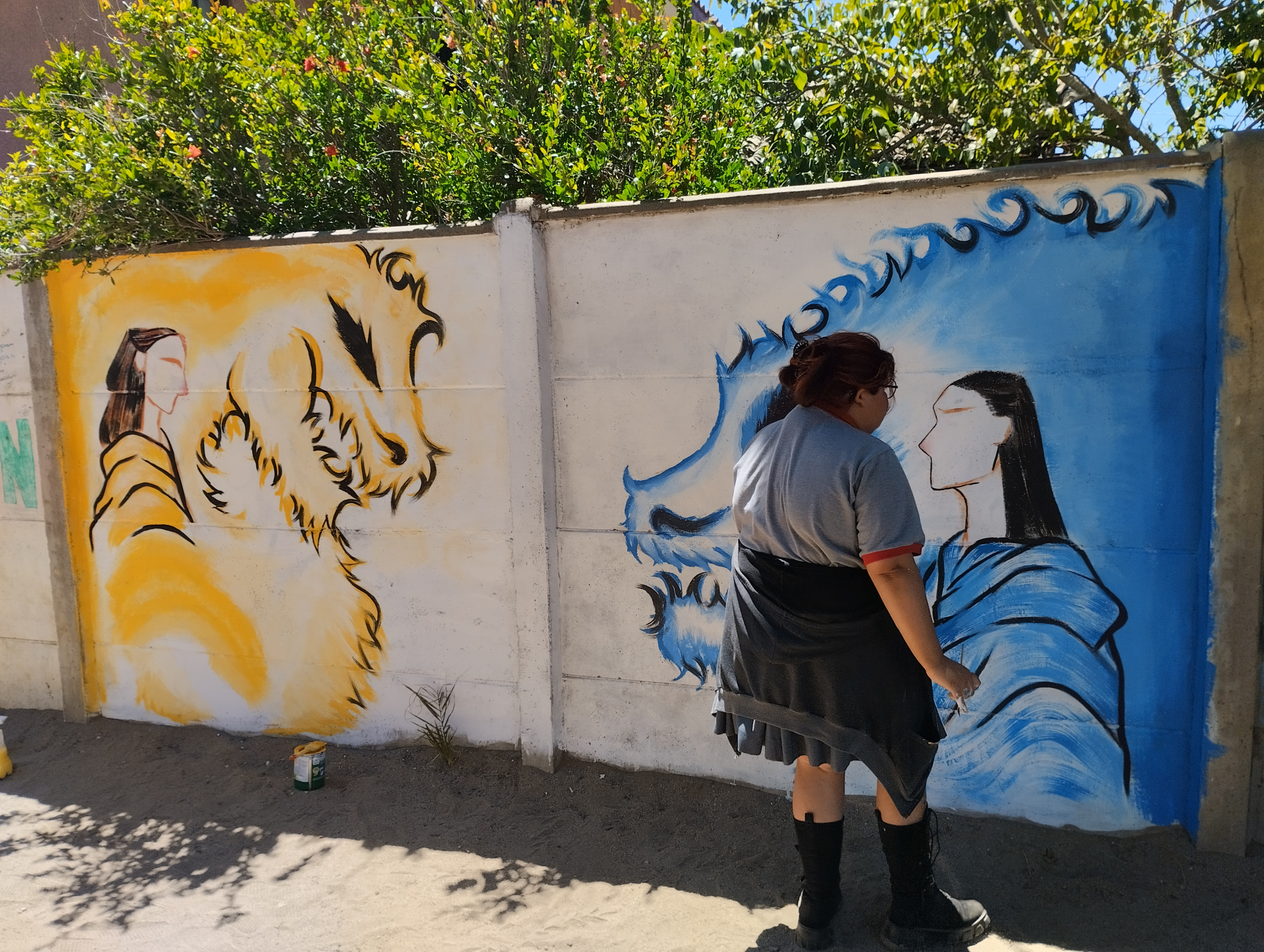 Estudiantes de Filosofía UV realizaron taller y pintaron mural junto a escolares en Colegio Nahuén de Quilpué