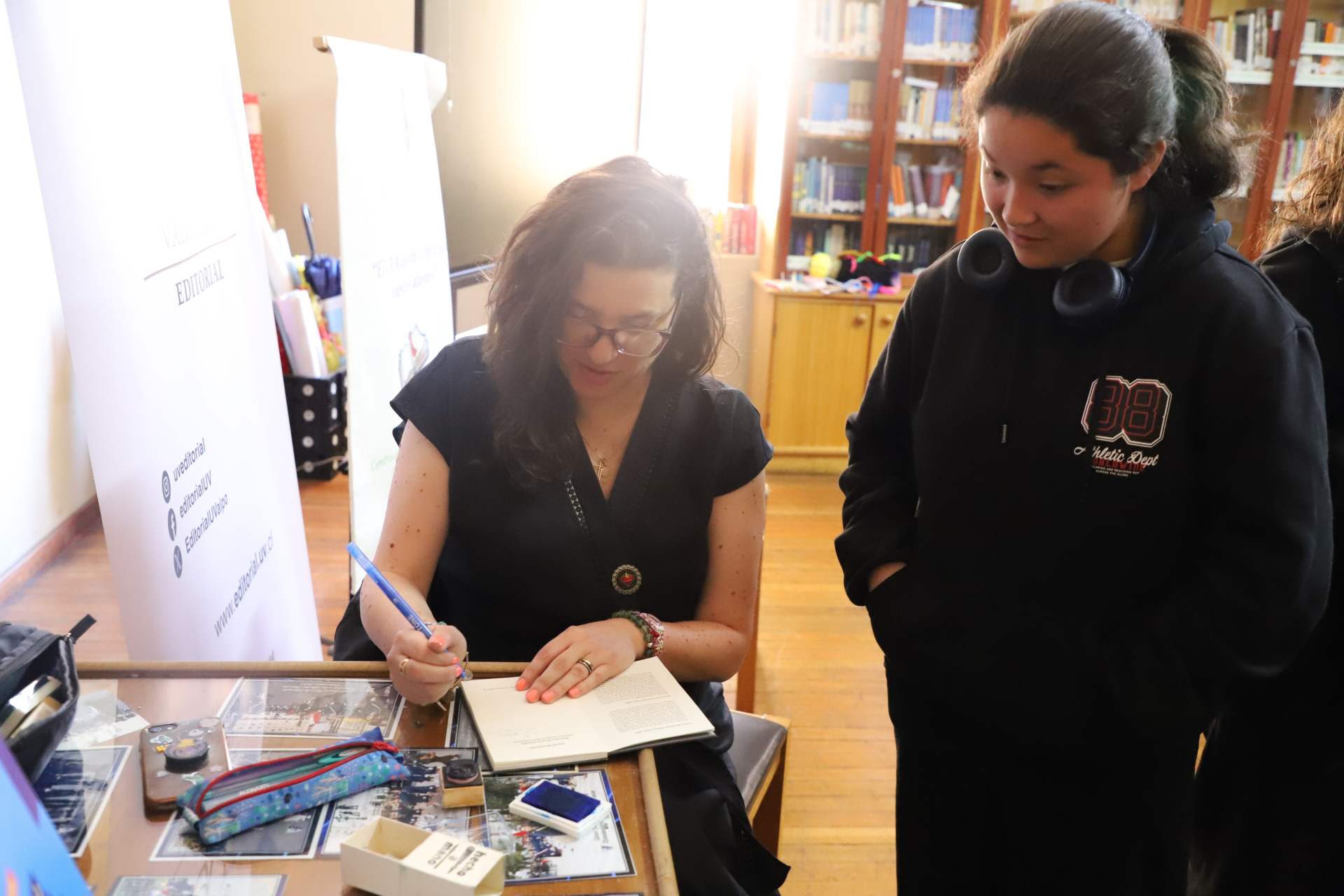 Este proyecto piloto también incluyó un encuentro con la escritora María José Navia, en el marco del Festival Puerto de Ideas Valparaíso 2024, en el cual estudiantes del Liceo Juana Ross conversaron con la autora y compartieron con ella el proceso de creación de minilibros con los ejercicios de escritura creativa que realizaron durante el club.