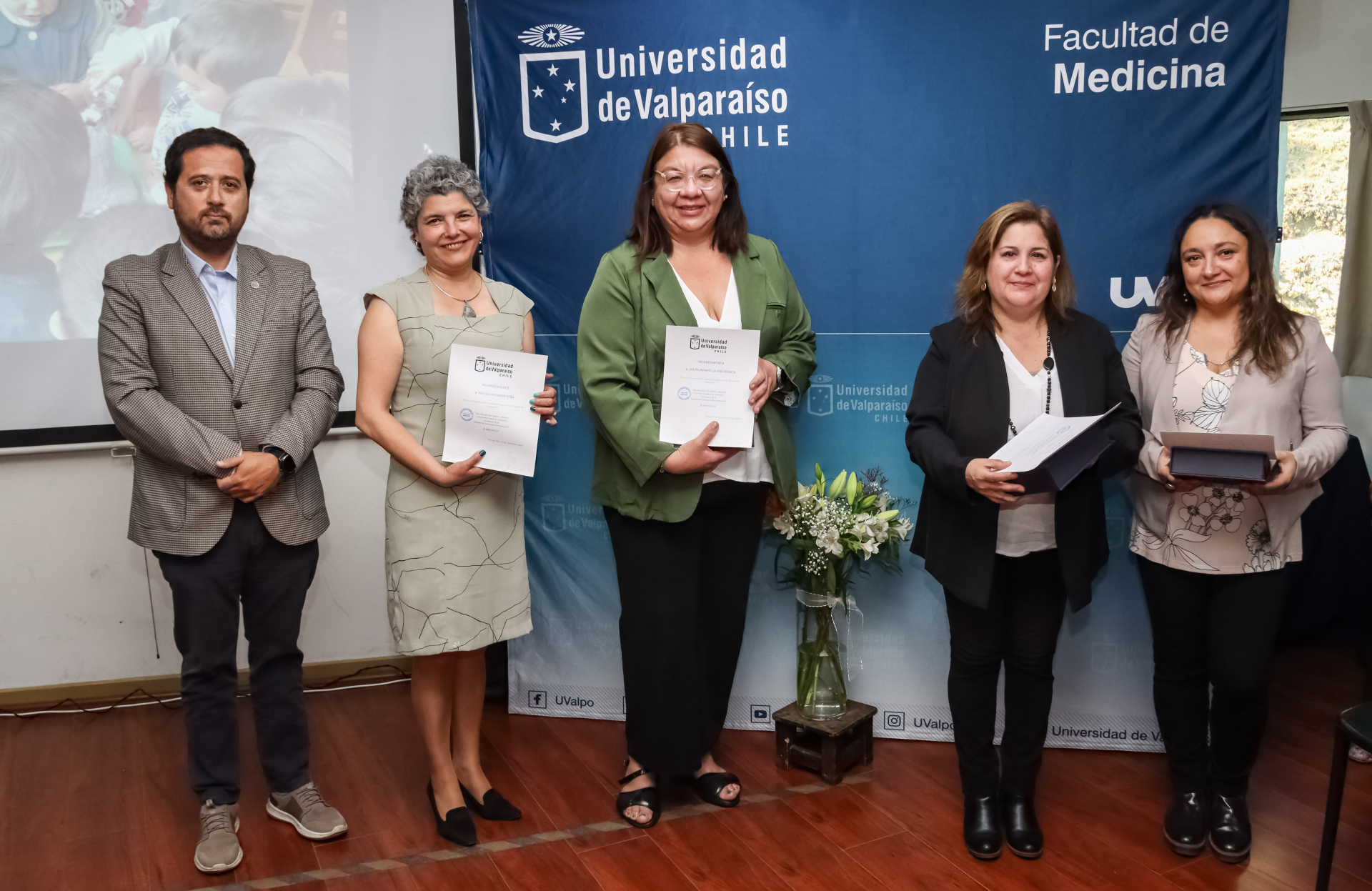 Los reconocimientos les fueron otorgados en una ceremonia que encabezó el rector Osvaldo Corrales, quien en la ocasión estuvo acompañado por la vicedecana de la Facultad de Medicina, Susana Cáceres; la directora de la Escuela y la jefa de dicha carrera, Gudrun Marholz y Patricia Herrera, respectivamente; el director de Relaciones Institucionales, José Luis Meza, y el director de Extensión y Comunicaciones, Osvaldo Bizama.