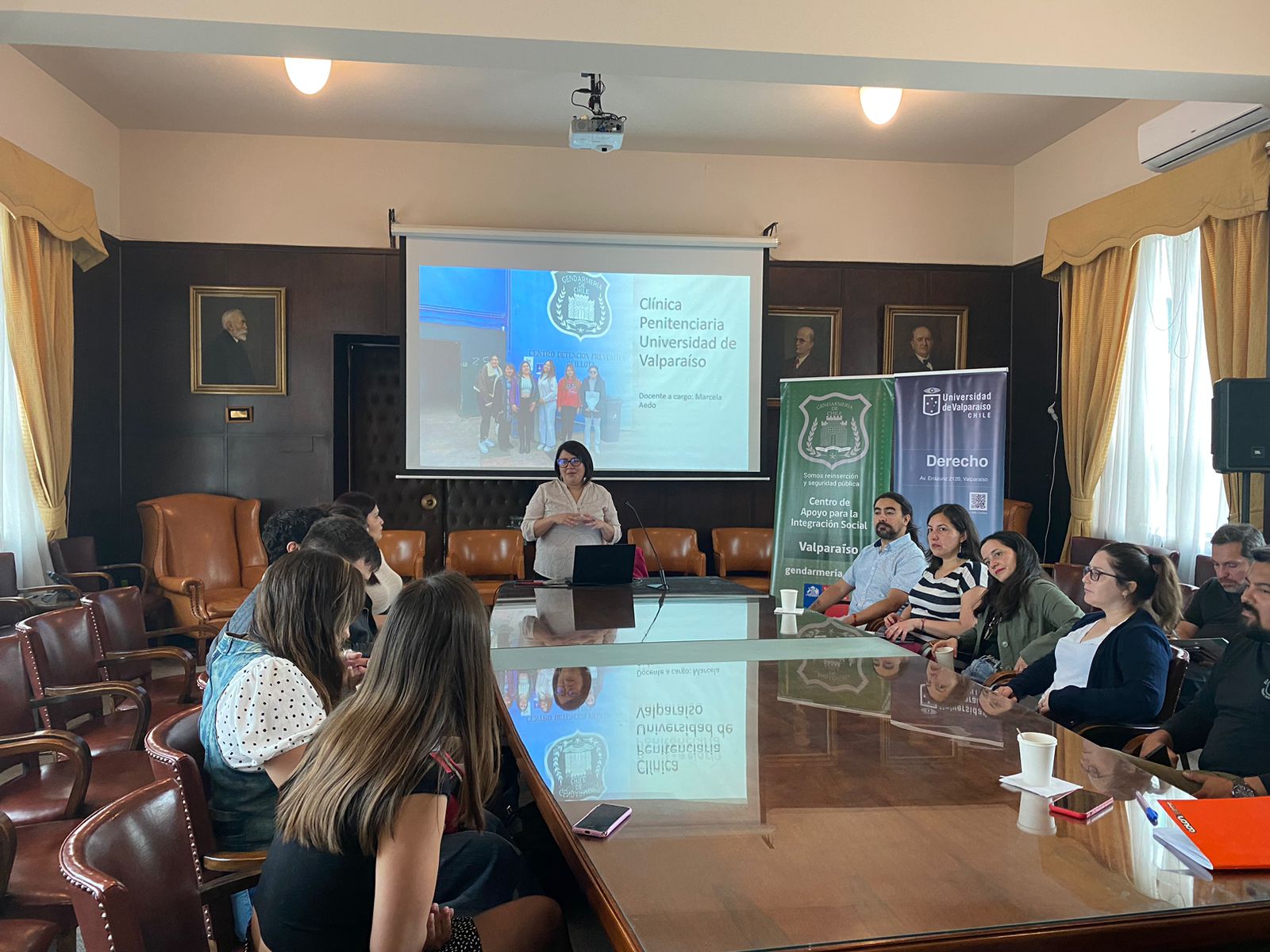 Por su parte, la ayudante Sofía Fernández expuso sobre los objetivos y fundamentos de la Clínica Penitenciaria de la Universidad de Valparaíso, además de los principios que sustentan la organización y desarrollo de cada proyecto que llevan a cabo.