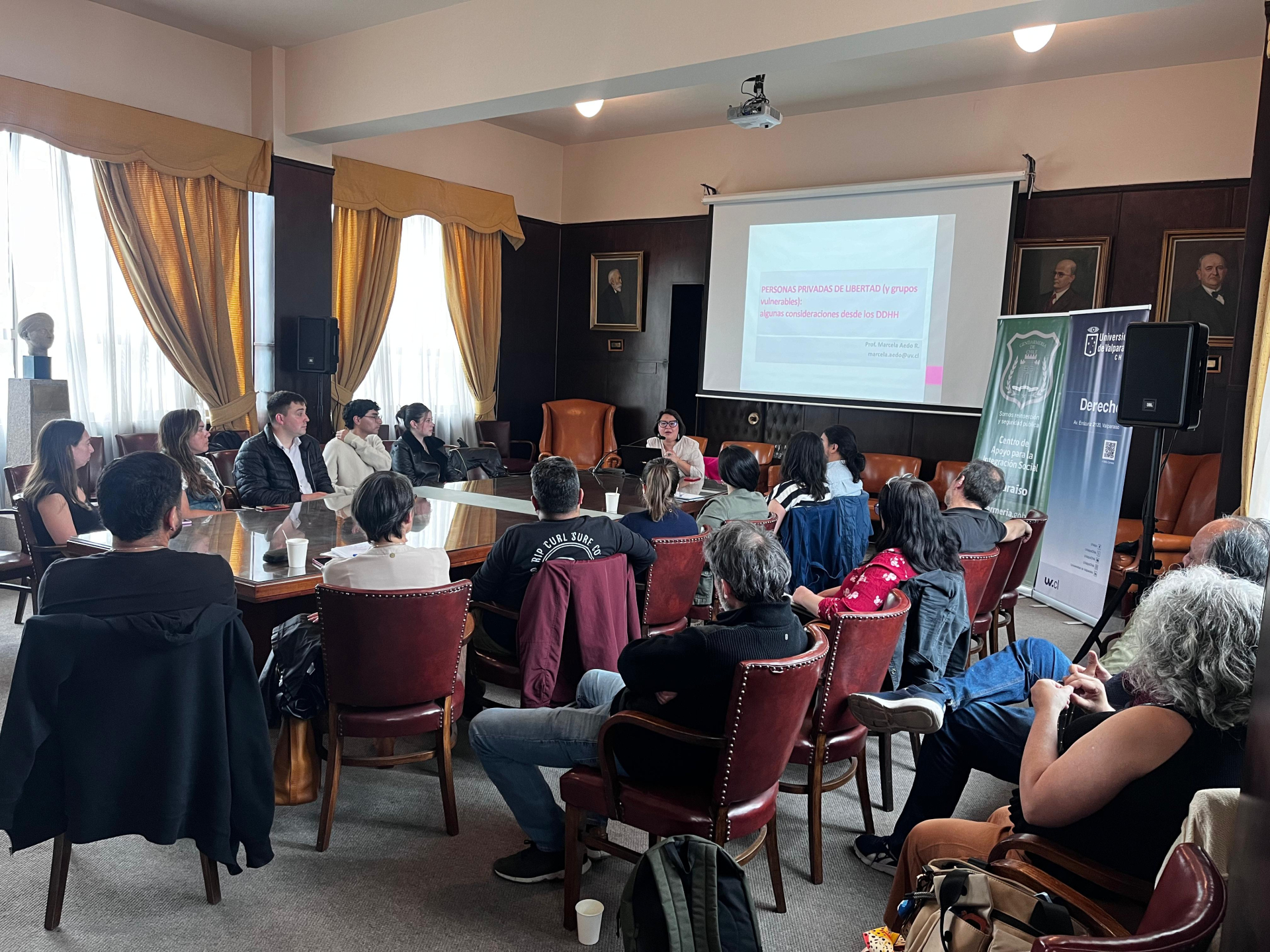 Profesora Marcela Aedo e integrantes de la Clínica Penitenciaria dictaron charlas sobre el marco normativo de derechos humanos de personas privadas de libertad, y la experiencia en las labores de la Escuela de Derecho.