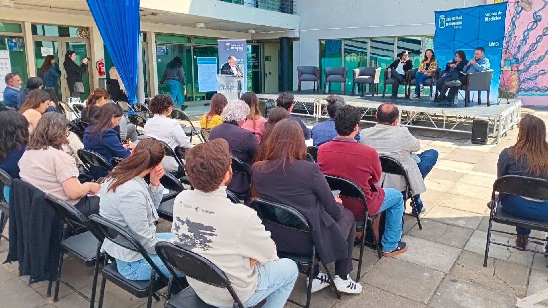 La actividad fue encabezada por el vicerrector de Investigación e Innovación de la UV, Juan Sandoval, quien estuvo acompañado por el decano de la Facultad de Medicina, Antonio Orellana, y los directores de Investigación y de Innovación y Transferencia Tecnológica de la UV, Fuad Hatibovic y Francisca Rosenkranz, respectivamente.