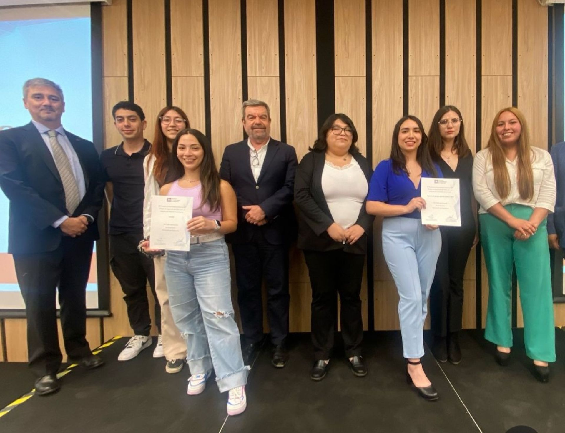 La ceremonia de premiación contó con la participación del presidente nacional del Colegio de Ingenieros, Hernán de Solminihac, y del presidente de la Especialidad industrial, Hugo Cañete, exestudiante UV, junto a directores, jefes de carrera y profesores de las distintas instituciones de educación.