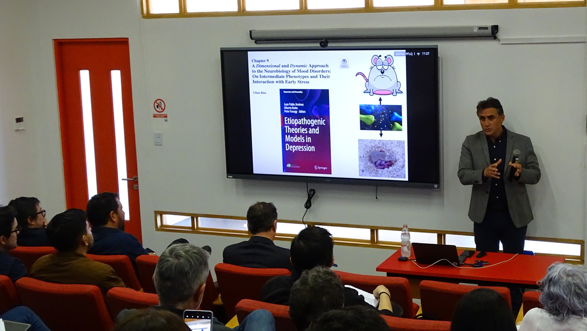 El seminario ofreció una oportunidad única para conocer parte del trabajo que desarrollan los investigadores del centro: el doctor Pablo Moya, director de C-ESTRES, presentó “Modelos animales de resiliencia”, destacando la importancia de entender los factores biológicos que protegen contra los efectos del estrés; el doctor Javier Morán expuso sobre “Trauma y psicopatología del desarrollo”, enfocándose en cómo las experiencias adversas influyen en la salud mental desde la infancia, y el doctor Ulises Ríos presentó “Trauma y psicopatología del adulto”, abordando las consecuencias del estrés no tratado en etapas avanzadas de la vida.