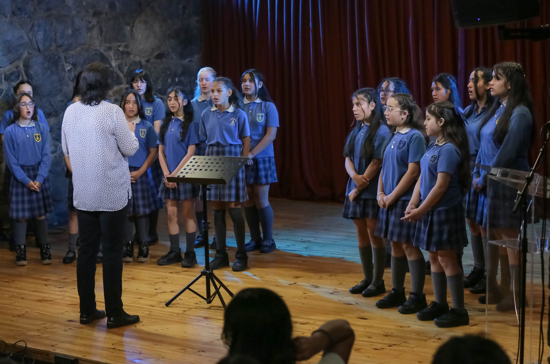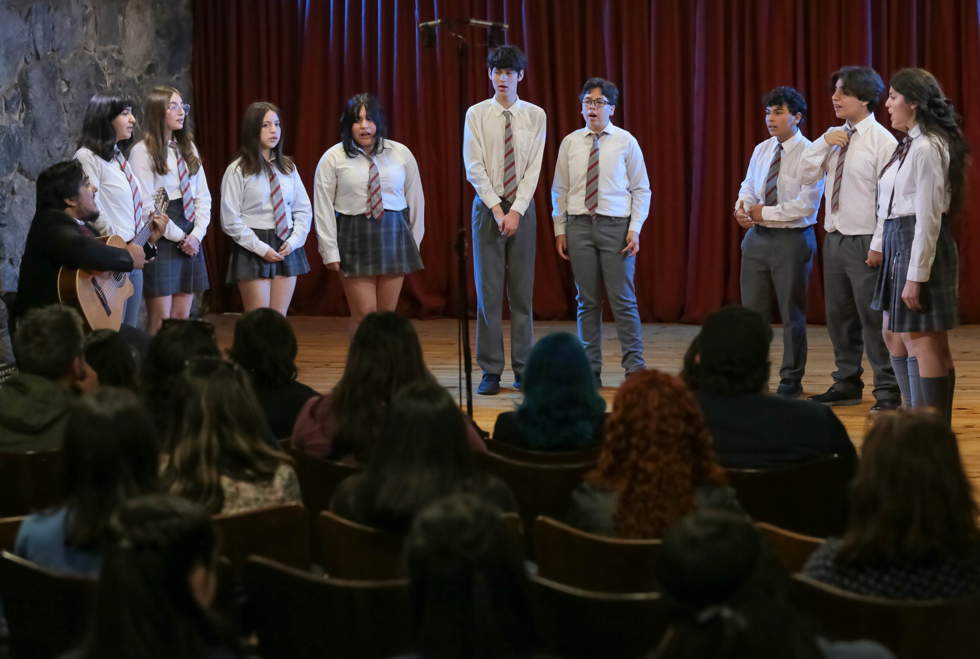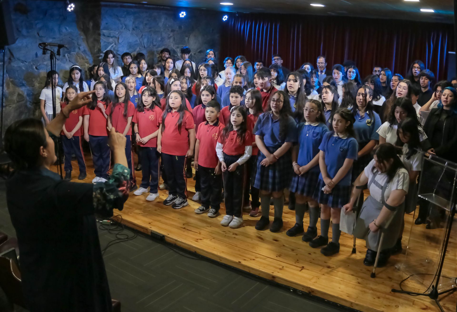 El último grupo escolar en subir al escenario fue el Coro Liceo Bicentenario de Valparaíso, que interpretó “Quodlibet folklórico” y “El quinteto del tren”, de Luis Advis, con arreglos de Leonardo Gatica.