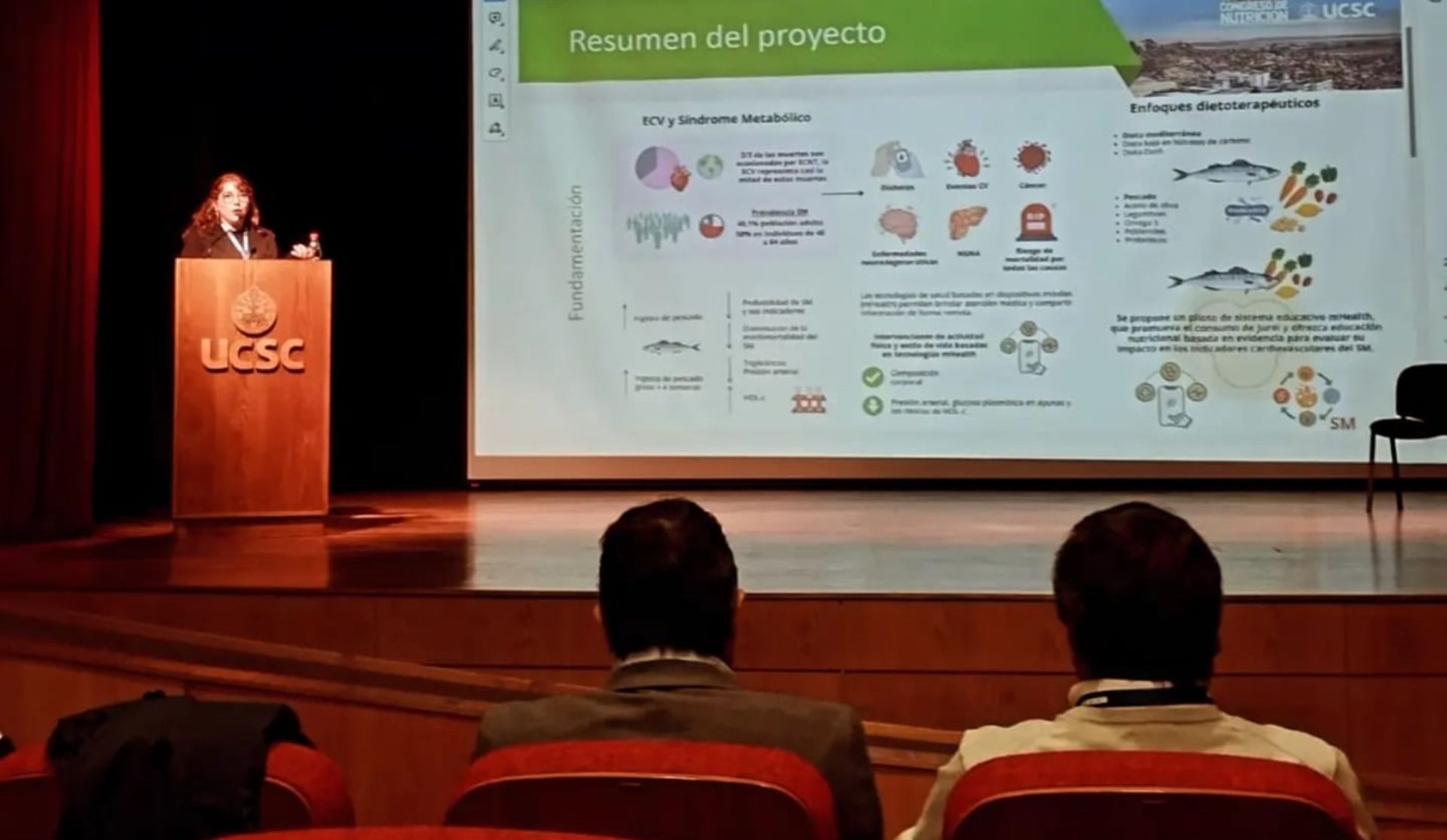 “Estudio piloto para evaluar la efectividad de un sistema educativo mHealth en la promoción del consumo de pescado (jurel) y la mejora de los indicadores cardiovasculares asociados a síndrome metabólico, en adultos de 45 a 64 años” se denomina la propuesta con la que la estudiante tesista del programa de Doctorado en Ciencias e Ingeniería para la Salud de la Universidad de Valparaíso, Ayleen Bertini, se adjudicó la convocatoria de Proyectos de la Sociedad Chilena de Nutrición, Bromatología y Toxicología (Sochinut) 2024.