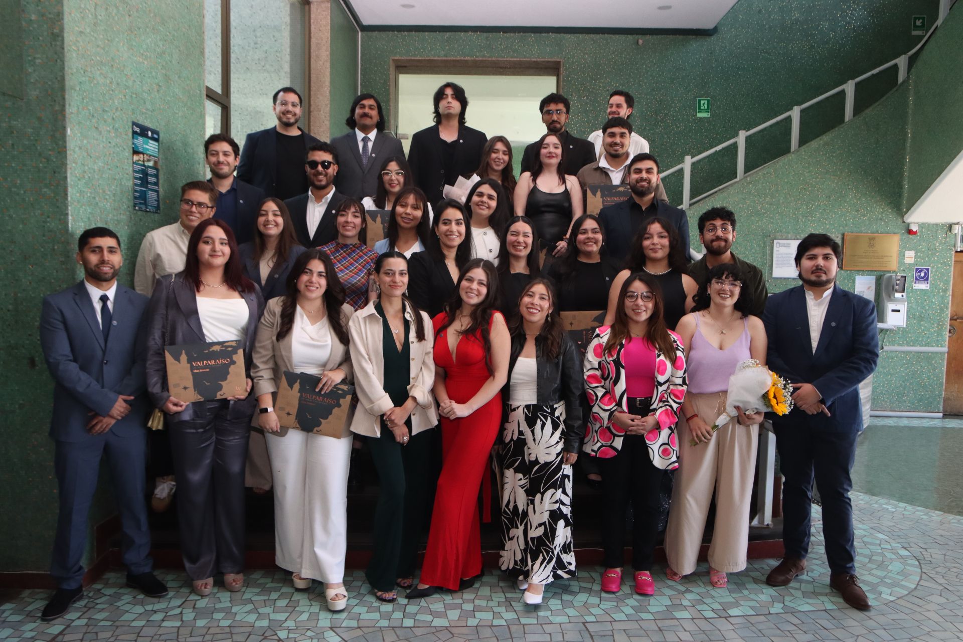 Treinta y cuatro nuevas y nuevos profesionales correspondientes al primer semestre 2024 tituló la carrera de Arquitectura de la UV, en una ceremonia realizada en el Aula Magna de la Escuela de Derecho, con la presencia del rector Osvaldo Corrales; el vicerrector de Vinculación con el Medio, Carlos Lara, y la directora de la Escuela de Arquitectura, Carola Molina, junto a académicos y familiares de los titulantes.