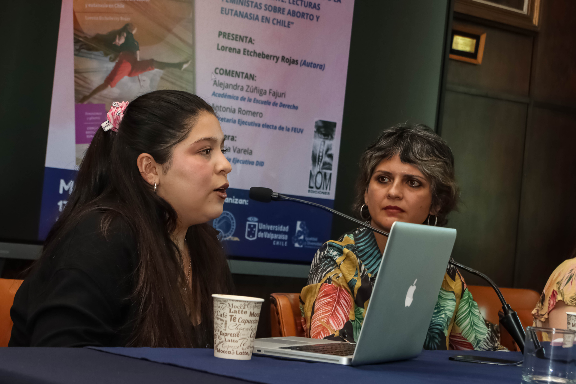 El libro “Tejiendo la vida y la muerte. Lecturas feministas sobre aborto y eutanasia en Chile”, de la socióloga Lorena Etcheberry Rojas, fue presentado en dependencias de la Escuela de Derecho de la Universidad de Valparaíso, en una actividad convocada en conjunto por esa unidad académica y la Dirección de Igualdad y Diversidad (DID) de la misma casa de estudios.