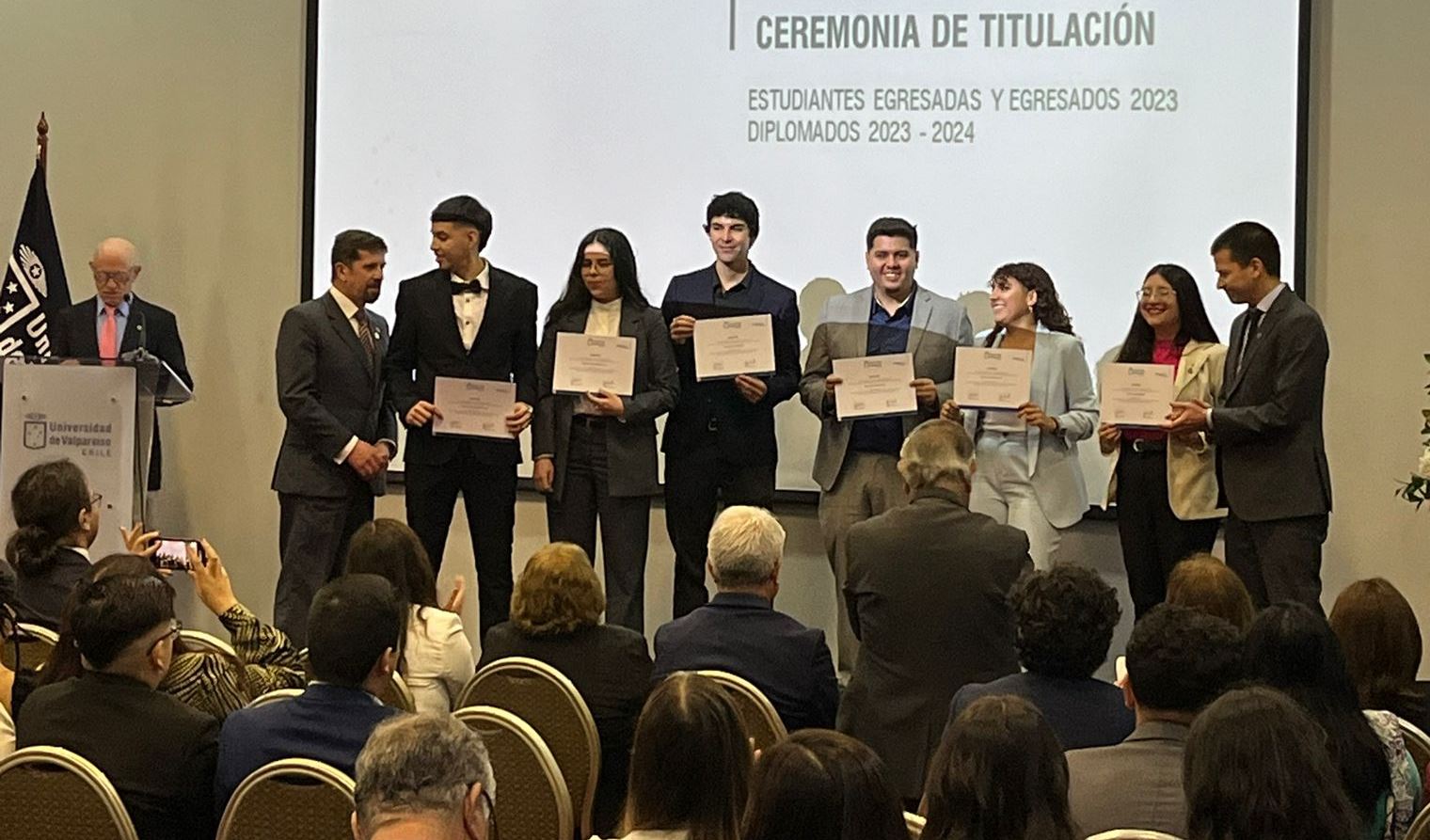 En la ocasión se entregaron los certificados correspondientes a los programas de diplomados 2023-2024, donde destacaron especialmente José Cruz Valdebenito, Pamela Rojas Zúñiga y Camila Véliz Ardiles. Y de manera especial, la carrera realizó un reconocimiento al mérito y aporte para el desarrollo de la industria, distinguiendo a los empresarios regionales y profesionales de la industria Jaime Barja Véliz, Antonio Bloise Ramos, Mauricio Espinoza medina, Franco Olguín Bustos y Ariel Rivadeneira González, estos dos últimos exalumnos de la Escuela.