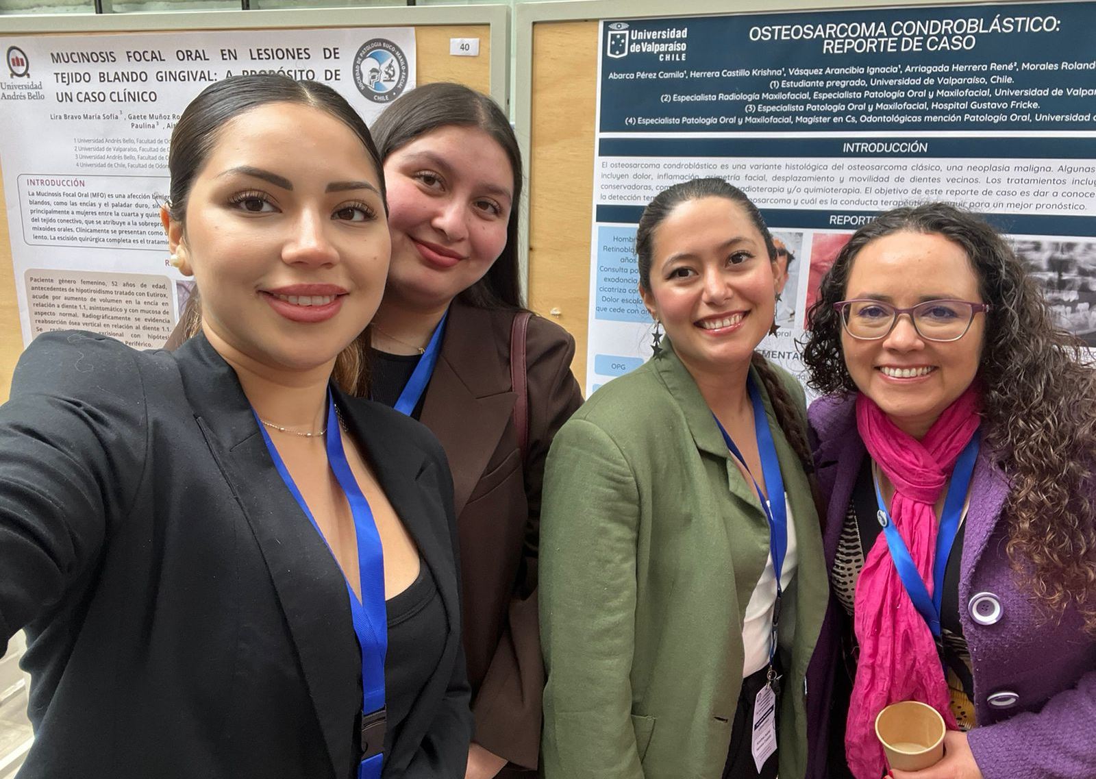Por otra parte, en la categoría de Casos Clínicos, la UV recibió una mención honrosa con el trabajo titulado “Osteosarcoma condroblástico: reporte de caso”. Esta distinción fue otorgada al equipo conformado por las estudiantes de pregrado Camila Abarca Pérez, Krishna Herrera Castillo e Ignacia Vásquez Arancibia, junto al especialista en Radiología Maxilofacial y Patología Oral, René Arriagada Herrera; el especialista en Patología Oral y Maxilofacial, Rolando Morales, y la académica Karina Cordero, especialista en Patología Oral y Maxilofacial y magíster en Ciencias Odontológicas de la UV.