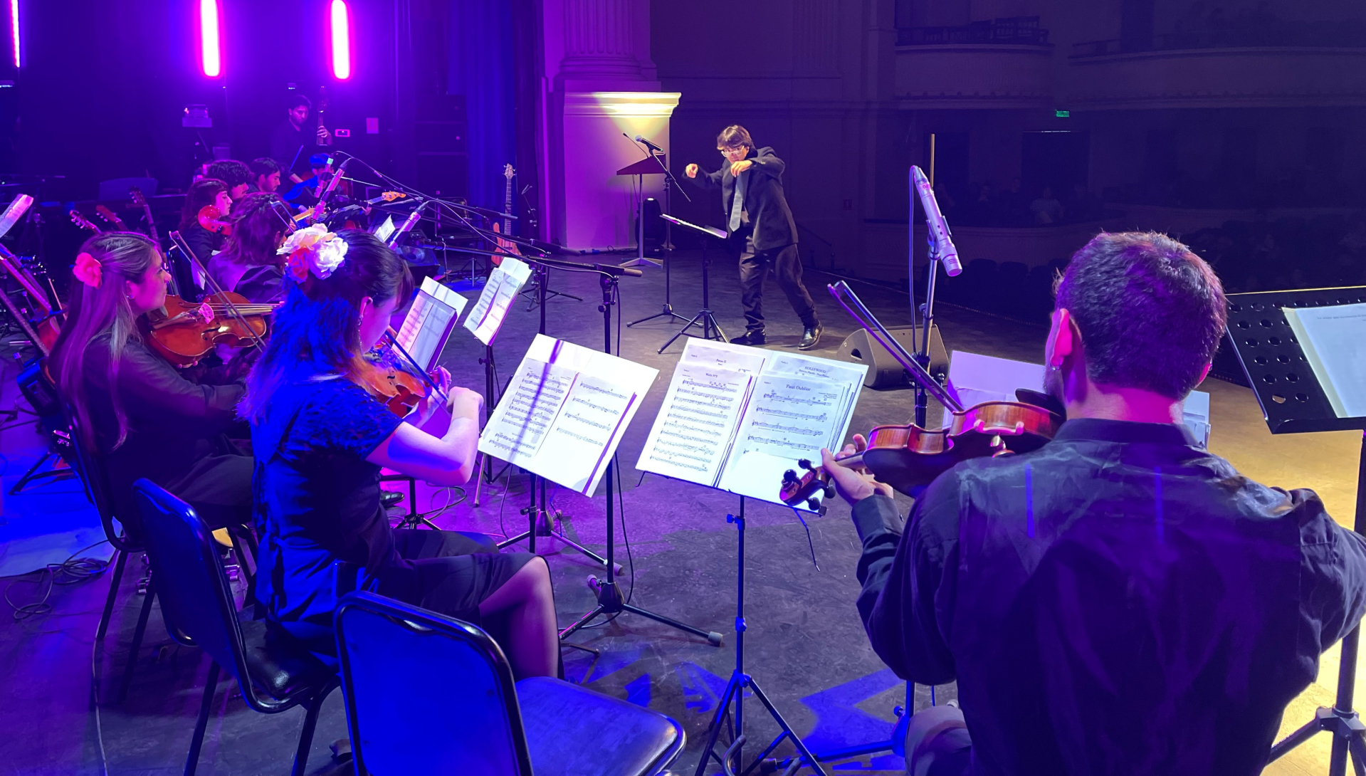 El repertorio incluyó también “Siesta de verano”, de la banda indie de mujeres y disidencias Gomitas Ácidas, con Maira Calderón; “Javier y Los Vientos”, de la banda Niños del Cerro, dirigida por Santiago Guichard; “Bet”, obra instrumental compuesta por Michael League, productor, compositor, bajista y líder de la banda Snarky Puppy, con Felipe Olivares; “Waltz N°2”, de Dmitri Shostakóvich, dirigida por Jonathan Opazo, y “Night Song-Take Care Of Business”, a cargo de Nicolás Piña.