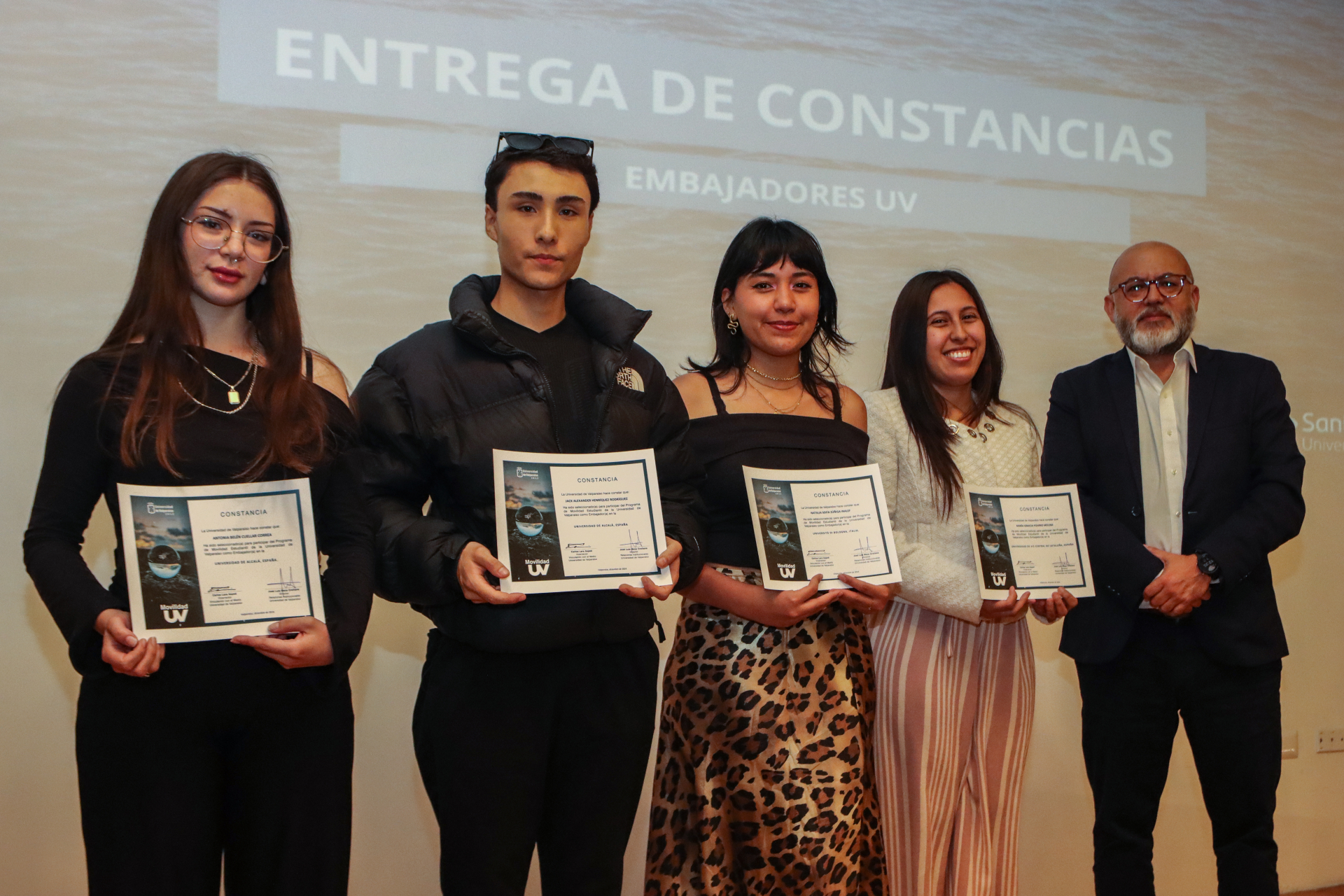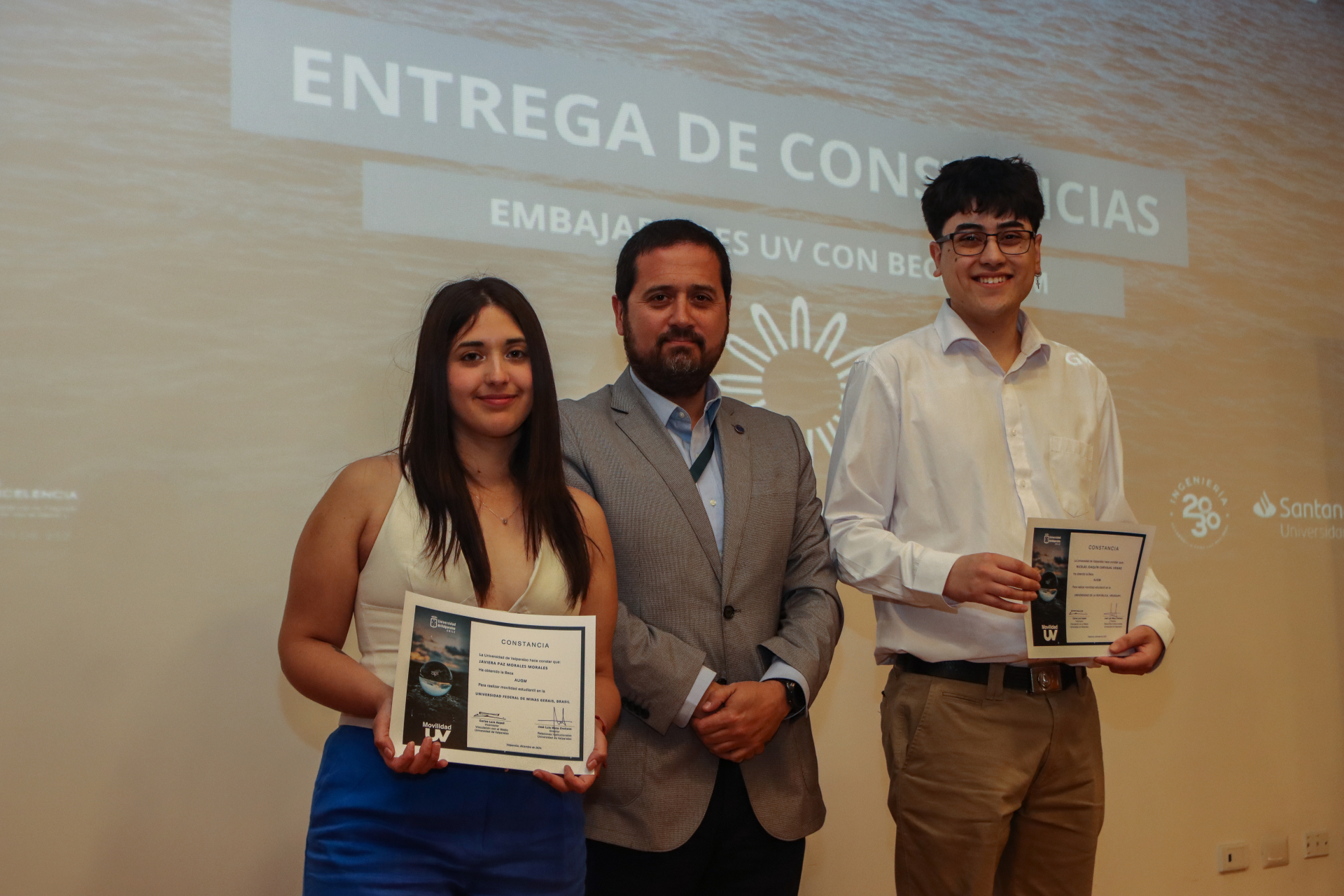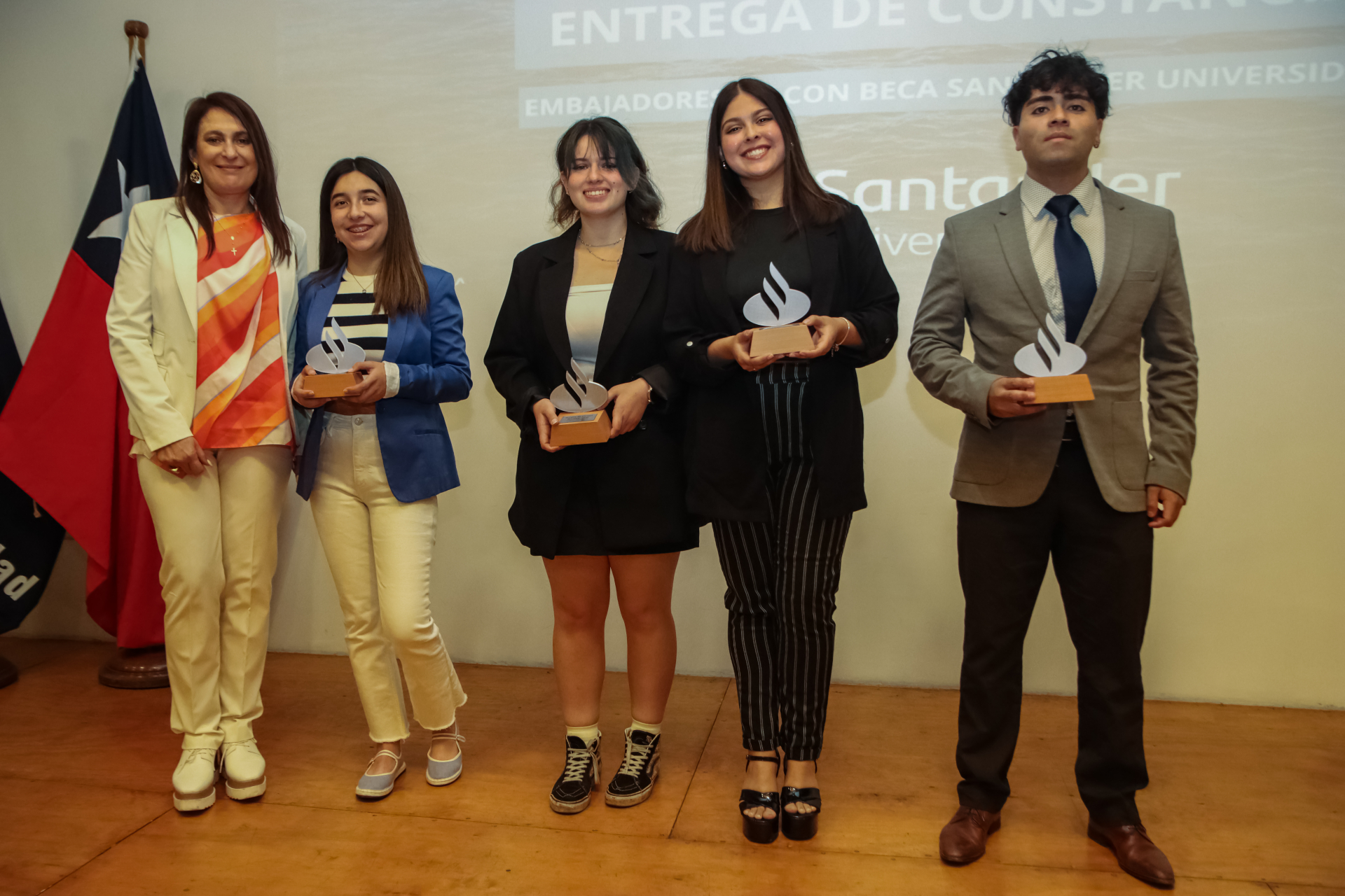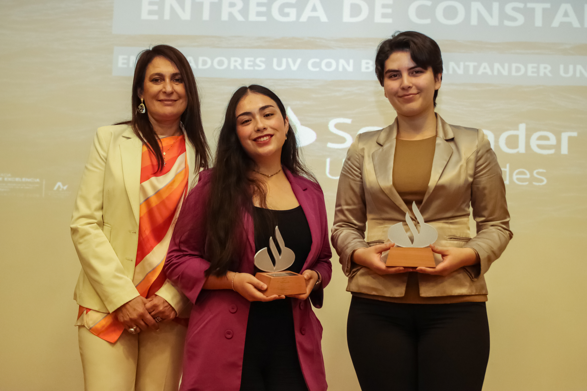 El acto fue encabezado por el rector de la UV, Osvaldo Corrales, quien estuvo acompañado de Sebastián Bunster, gerente de Santander Universidades; Benjamín Barros, director de Relaciones Institucionales y Emprendimiento de Santander Universidades; Stefania González, ejecutiva de Santander Universidades, y Carlos Lara, vicerrector de Vinculación con el Medio de la UV. Asistieron también directivos centrales y representantes de las Facultades y Escuelas, así como familiares, amigas y amigos de las y los estudiantes.