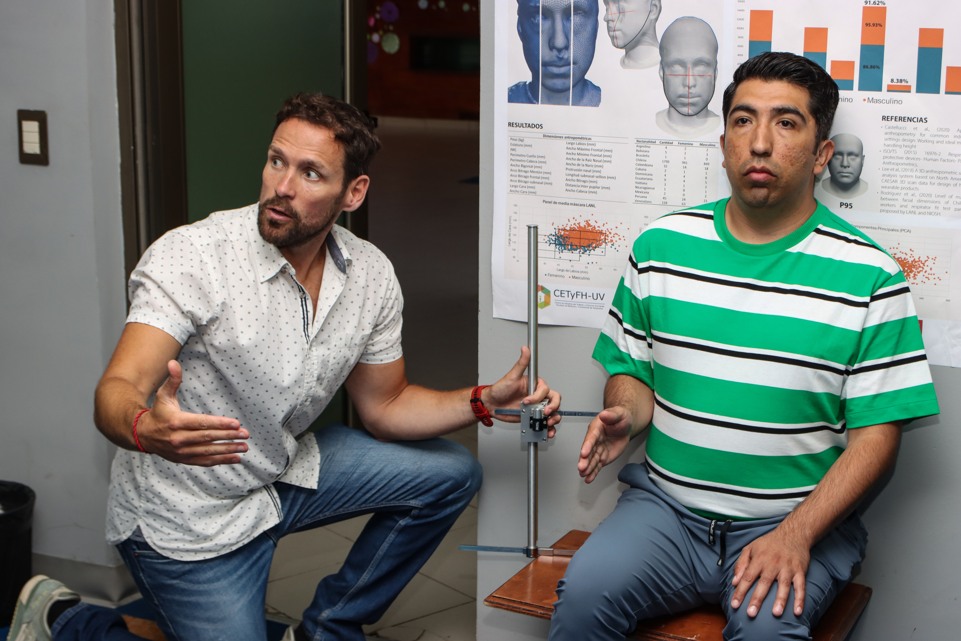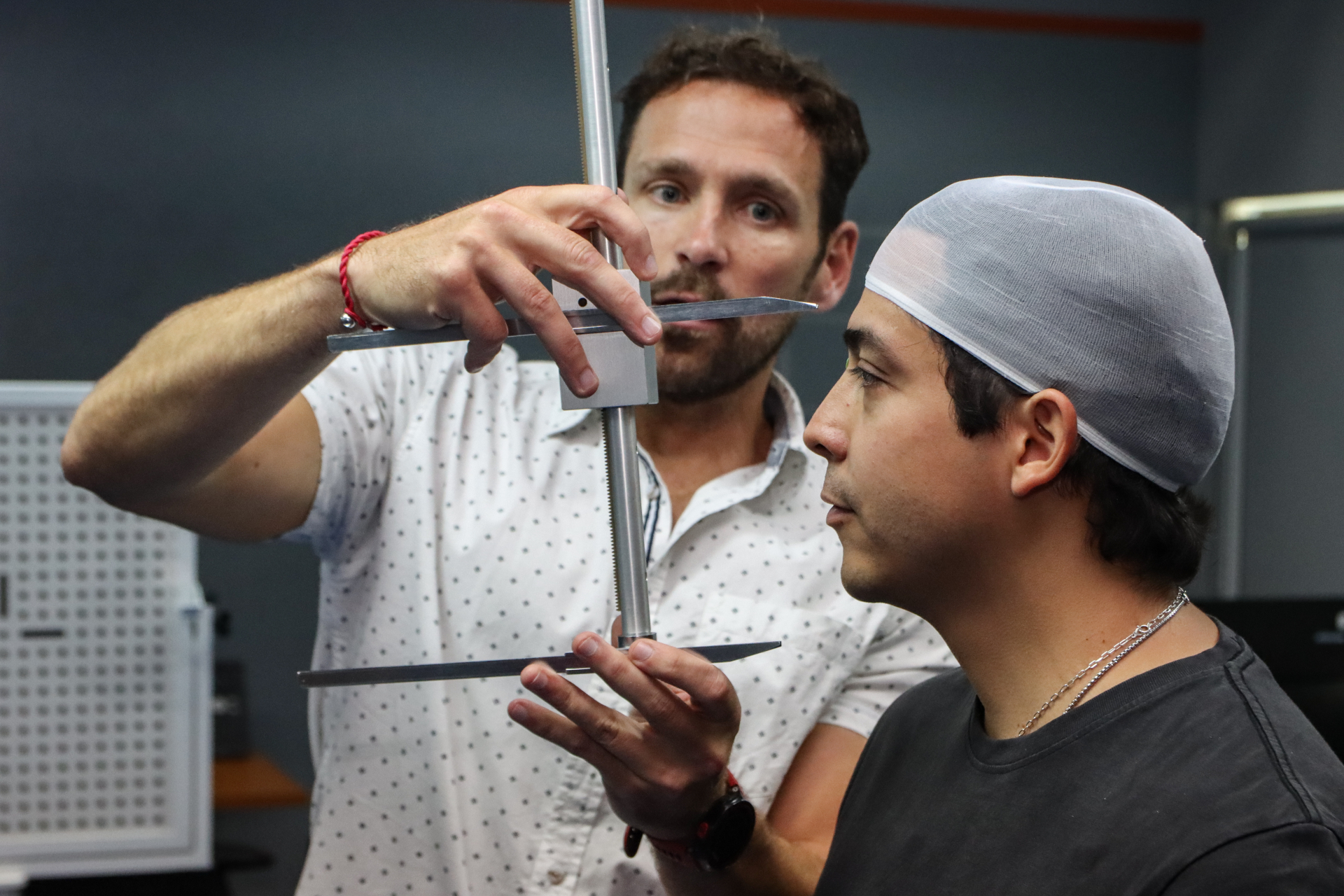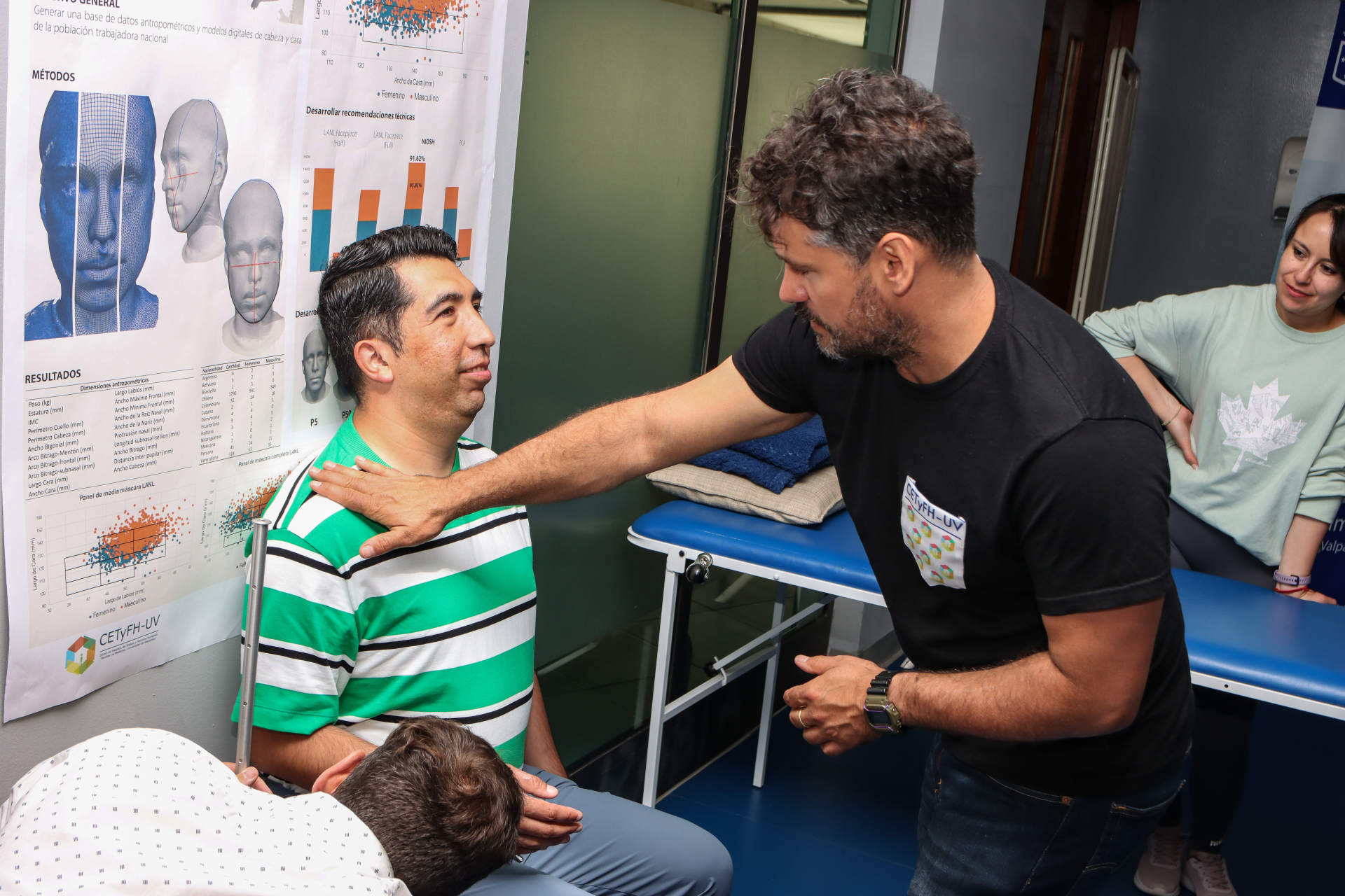 Parte importante de los ejercicios prácticos tuvieron lugar en el Laboratorio de Ergonomía y Biomecánica del Centro de Estudios del Trabajo y Factores Humanos (CETyFH) de la Escuela de Kinesiología, donde cada uno de los catorce profesionales matriculados en la tercera versión de este magíster, siete chilenos y siete extranjeros (provenientes de Argentina, Bolivia, Colombia, Ecuador, México y Perú), debieron realizar una serie de ejercicios y evaluaciones antropométricas, bajo la supervisión y guía del propio Castellucci y de los profesores Carlos Viviani y Edgardo Silva.