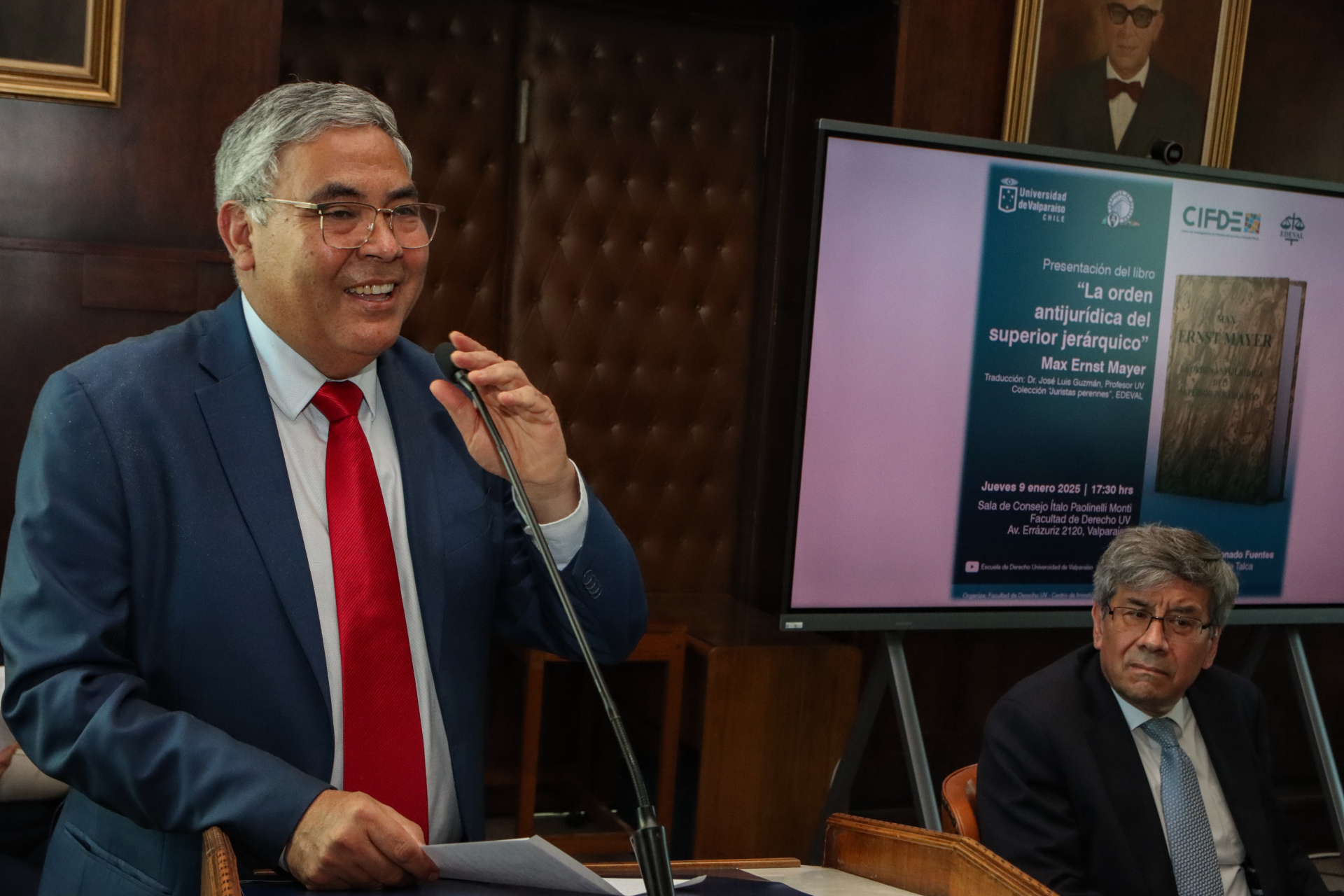 Recientemente tuvo lugar la presentación del libro “La orden antijurídica del superior jerárquico”, del jurista alemán Max Ernst Mayer (1875-1923), correspondiente a una traducción desarrollada por el profesor y presidente del Departamento de Ciencias Penales de la Escuela de Derecho de la Universidad de Valparaíso, José Luis Guzmán, a través de la editorial Edeval de la Facultad de Derecho UV.