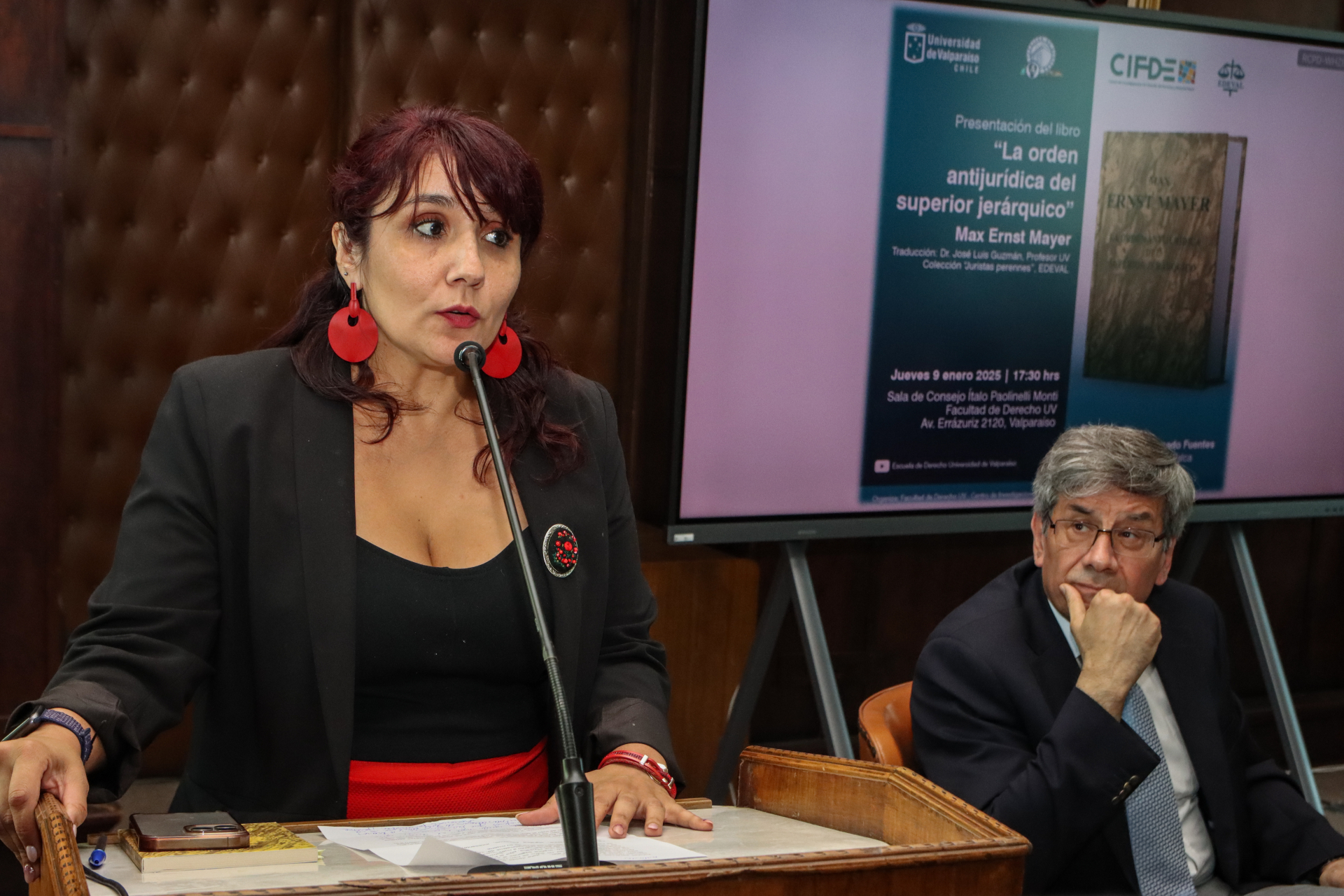 Por su parte, la directora Inés Robles detalló en sus palabras que “‘Juristas perennes’ es una colección que data del año 1978, que permitió revivir a juristas, y antes de este quince libros se habían realizado bajo este título de la colección. Varios de ellos han implicado traducciones al español, como es el caso de la traducción del alemán que realiza en este acto el profesor José Luis Guzmán. Lo anterior no solo obliga un dominio del idioma y del lenguaje técnico jurídico, sino que implica además el dominio de la obra del autor y leerlo conociendo lo que pensaba, pues busca llevar no solo sus palabras, sino más bien su pensamiento a nuevos lectores, en este caso de habla hispana, a más de doce mil kilómetros de distancia de su lugar de nacimiento, y a más de cien años de su muerte”.