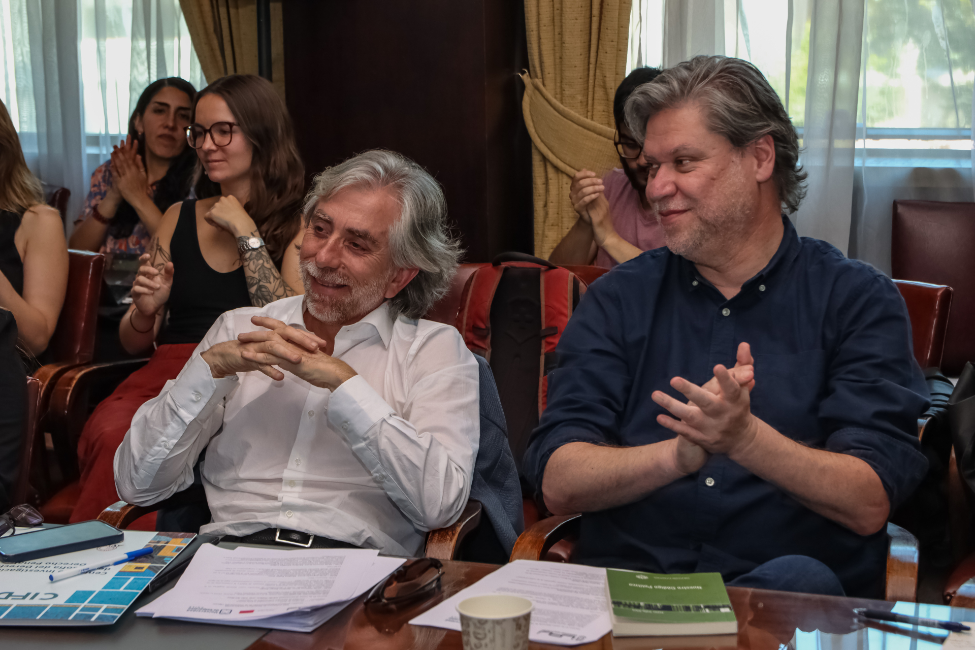 Luego se dio paso a la primera mesa, donde expusieron Felipe Bravo, sobre “El Estado social y democrático de Derecho como fórmula implícita en la Constitución Chilena”; Jaime Bassa, acerca de “El fetichismo de los derechos sociales”; Aurora Rozas, respecto a “La universalización de la Atención Primaria de Salud y la construcción de un Estado Social a nivel infraconstitucional”, y Rodrigo Castillo, sobre “Dos reformas ¿un mismo cauce?: el estatuto constitucional y legal de las aguas en Chile en el ciclo 2014-2023”. La instancia fue moderada por Diego Pardo.
