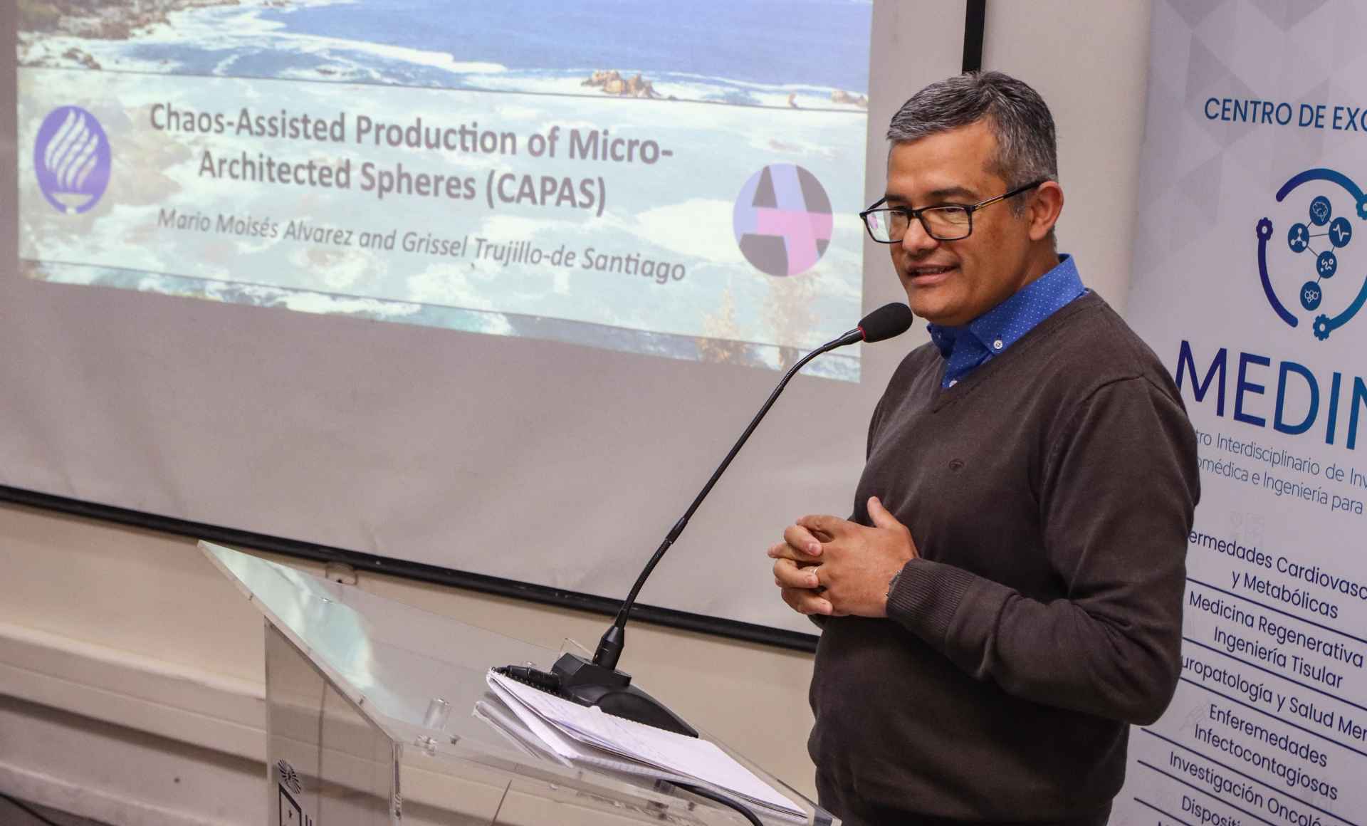 Como parte de su visita, los doctores Álvarez y Trujillo dictaron las conferencias tituladas “Producción asistida por el caos de esferas con microarquitectura” y “Biología en un chip” ante un grupo de docentes y estudiantes de las unidades y programas de postgrado institucionales ya mencionados. Además, se reunieron con autoridades académicas y recorrieron las instalaciones de la Facultad de Medicina y los laboratorios del Centro Meding y de otras unidades que integran el edifico clínico de dicho plantel.