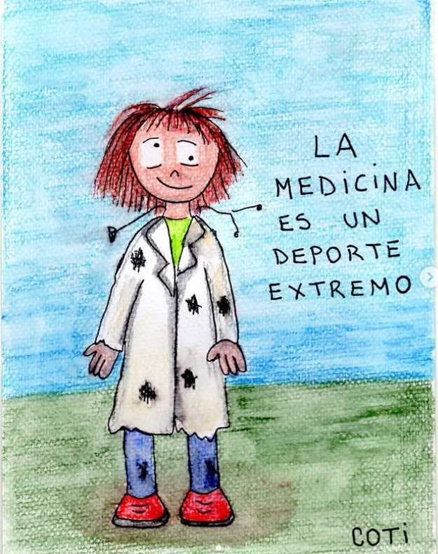 “Coti” Funes —por su firma en los cómics y muy visitada en redes sociales por sus publicaciones constantes en @gajosdeloficio de Instagram— ha destacado por desarrollar una línea de humor médico gráfico a partir de su experiencia como médica de urgencia pediátrica en Buenos Aires. Ha publicado dos libros: “Pequeños gajos del oficio médico” (2018) y “Grandes gajos del oficio médico” (2023), y realiza un podcast de humor médico que se encuentra disponible en YouTube.