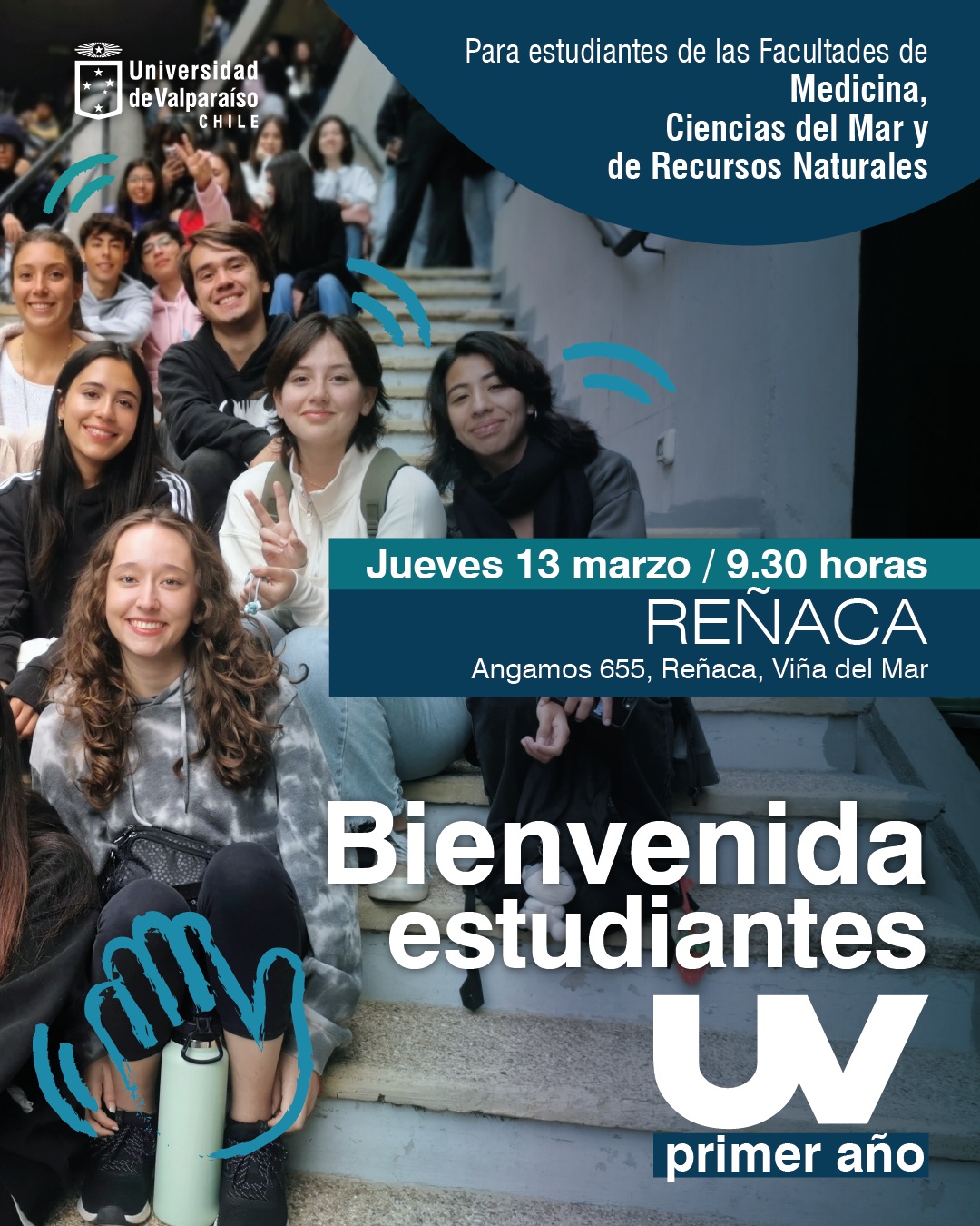 Finalmente, el jueves 13, a las 09:30 horas, se efectuará la bienvenida a las y los estudiantes del Polo Reñaca, en el edificio R1 de Angamos 655. Están invitadas e invitados los estudiantes de las Facultades de Medicina y de Ciencias del Mar y de Recursos Naturales.