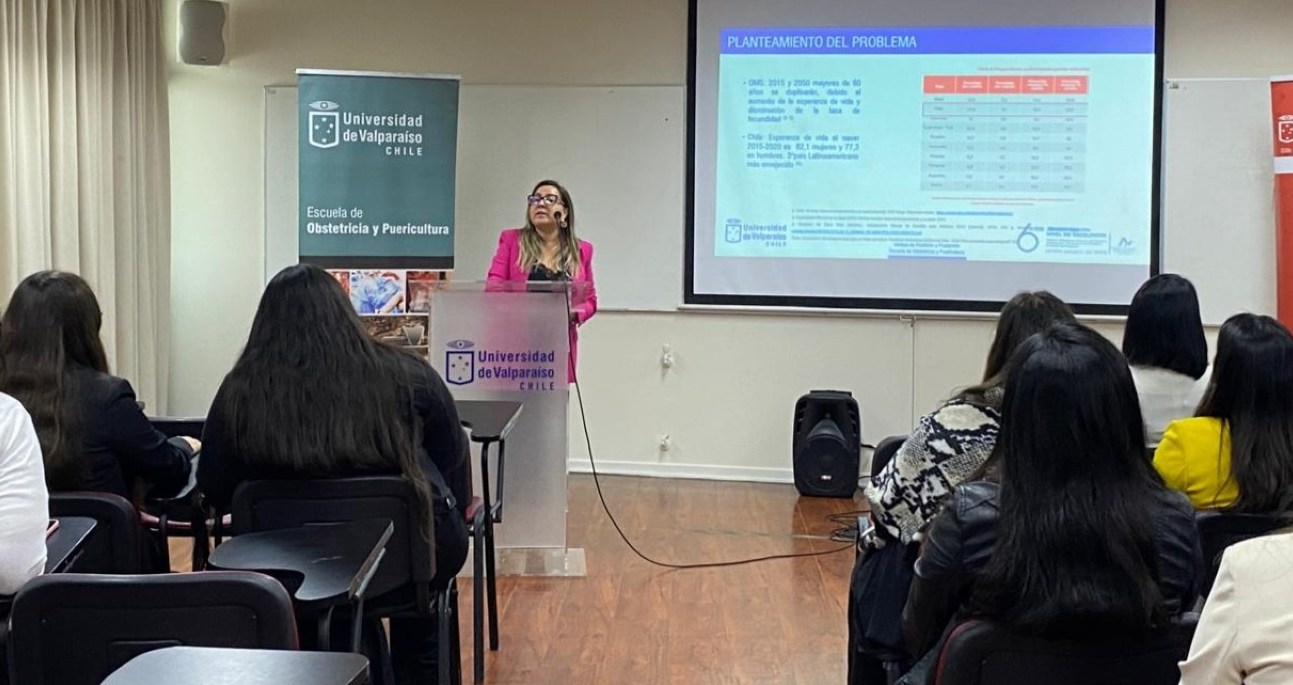 El encuentro tuvo lugar en el Campus de la Salud de Reñaca, sede de la Facultad de Medicina UV, y su programa incluyó la conferencia titulada “Percepción de las mujeres autovalentes mayores de sesenta años sobre su salud sexual”, que dictó la matrona Claudia Sánchez, quien es magíster en Salud de la Mujer y docente del Departamento de Salud Sexual y Reproductiva de dicha carrera.