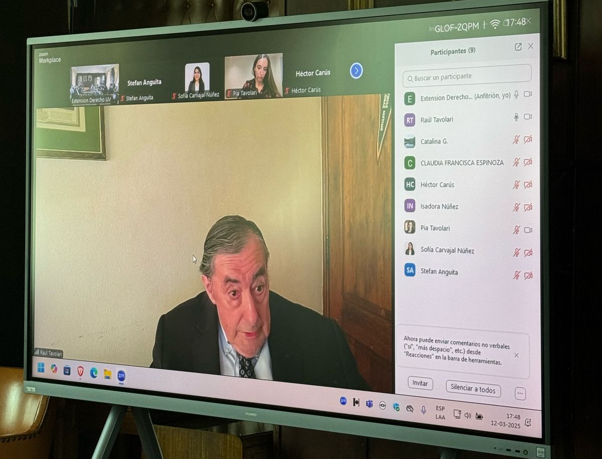 Profesor emérito de la UV Raúl Tavolari expone en Taller de Derecho Procesal y Probatorio