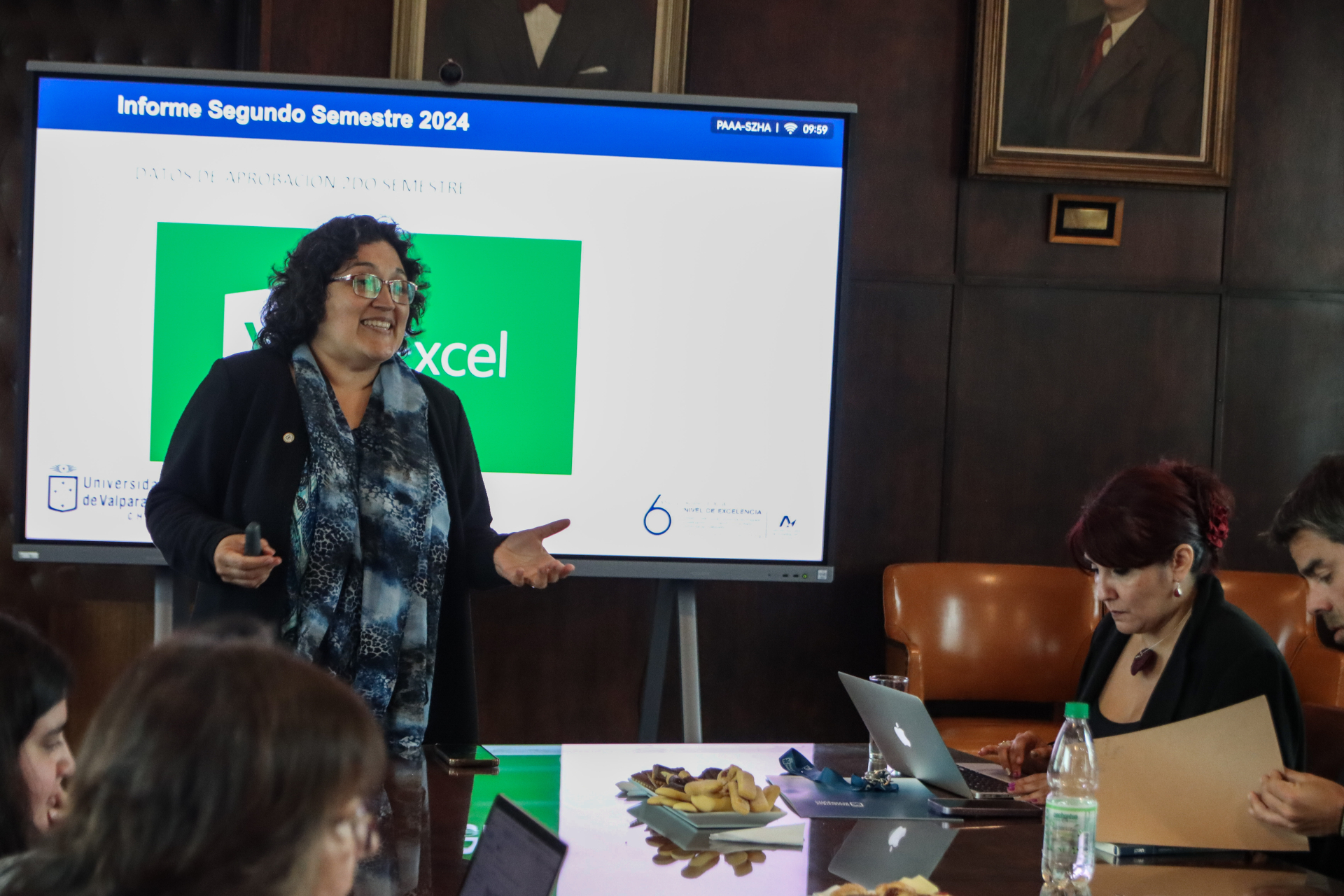 Durante la jornada se hizo referencia a los resultados de los diagnósticos institucionales, y se analizaron distintos aspectos relativos a la caracterización de las y los estudiantes, a partir de documentos elaborados por la Dirección de Análisis Institucional de la Universidad de Valparaíso. Lo anterior en cuanto a la procedencia, residencia, género, rendimiento, matrícula, contexto familiar, cuidados y salud, antecedentes personales, autorregulación, habilidades comunicativas de inglés y en comprensión de textos, y pensamiento lógico matemático.